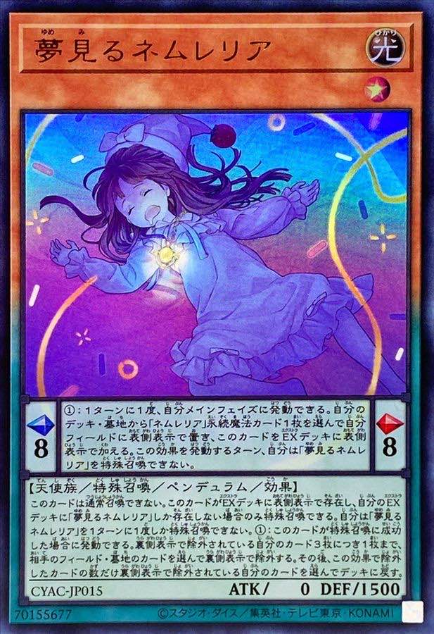 | … | 1625/12/09(火)11:25:24No.1380681192+この効果を発動するターン、自分は夢見るネムレリアを特殊召喚できないが絶妙に邪魔 |