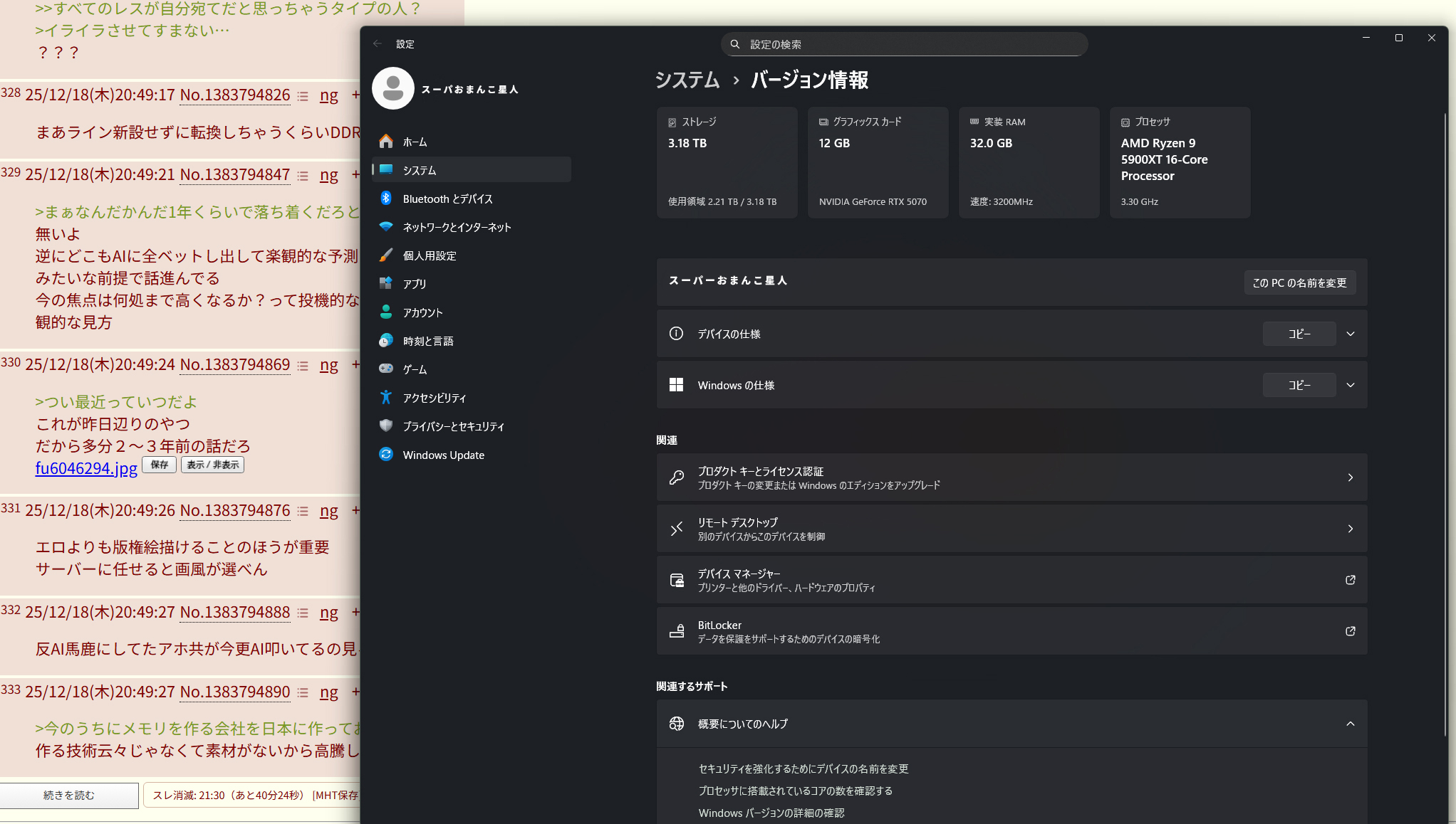 | … | 8325/12/18(木)20:22:50No.1383785295そうだねx13時期が悪いおじさん「今のPCで後3年頑張る」 |