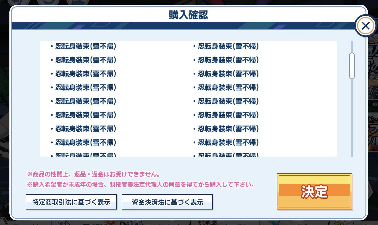 忍転身の衣装を有料で売るとは…っていうかこれ買えば雪不帰は手に入るってことかい?
