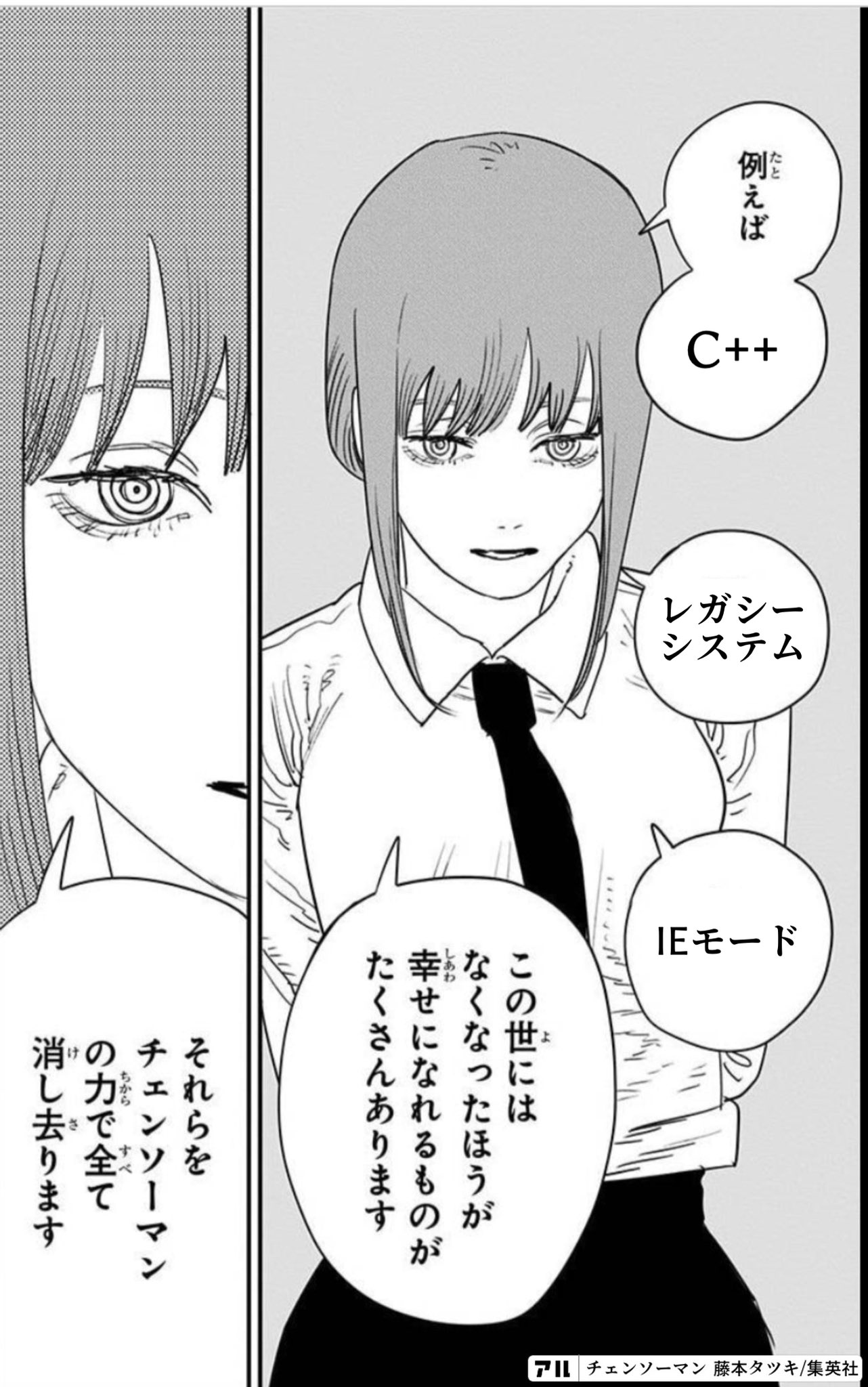 | … | 16925/12/22(月)00:17:57No.1384923110そうだねx1>レガシーシステムの悪魔をチェンソーマンに食わす |