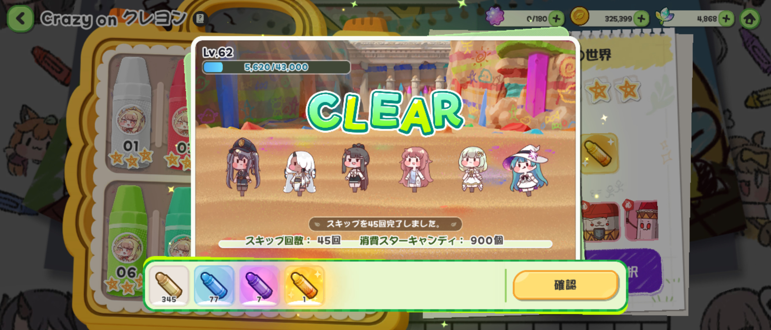 | … | 3725/12/22(月)17:56:07 ID:FOiRYI8MNo.1385102238+>クロファク掘ってる「」ミーは他の資源枯渇問題どうしてるにゃ? ☆5にしたい子のクローンやって使徒証集めつつ残った飴でクレヨンガチャして18時の飴でマシュマロ拾ってるにゃん スキル育成急ぎたいときはクレヨン諦めてるにゃん |