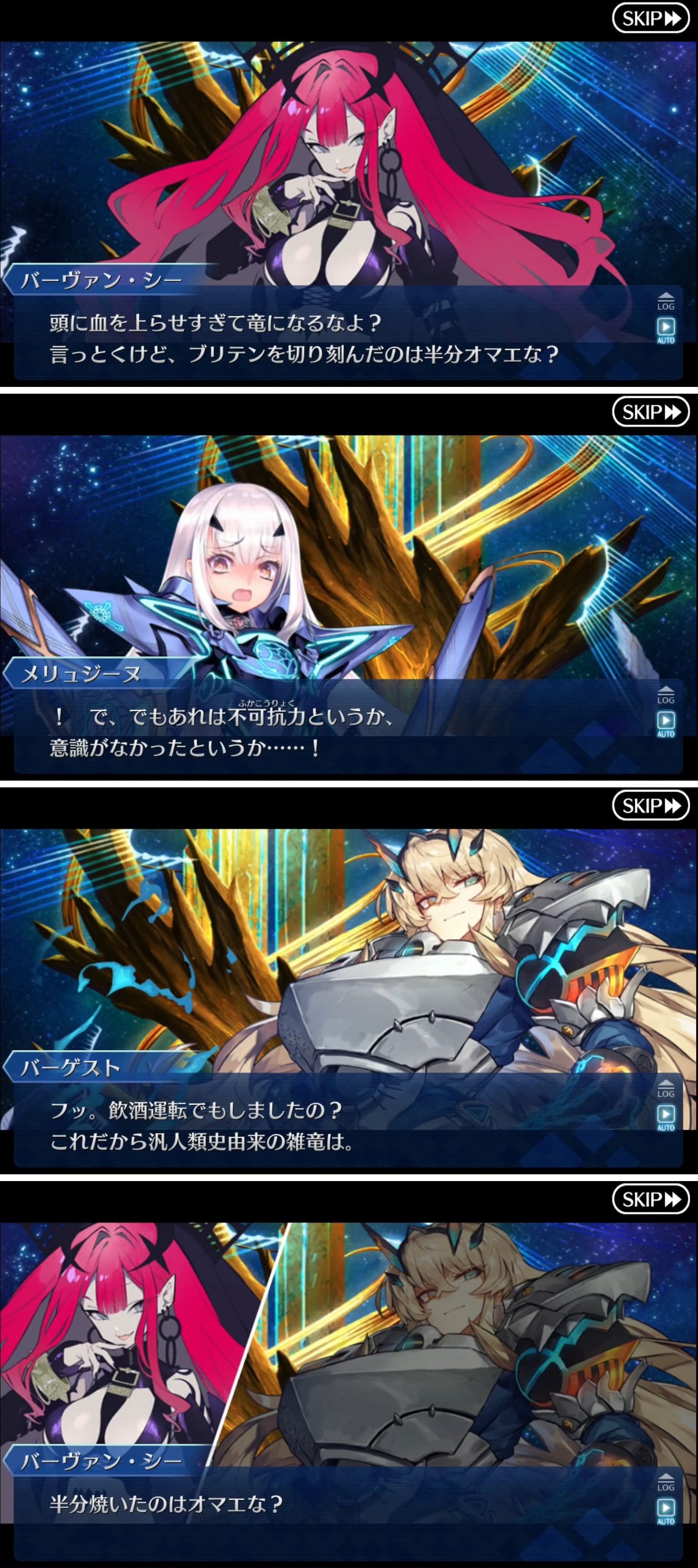 | … | 4725/12/23(火)22:42:38No.1385530784+>二番目の異聞帯まではずっとシリアスだったのに三番目から徐々に様子がおかしくなり六番目になると開幕これ |