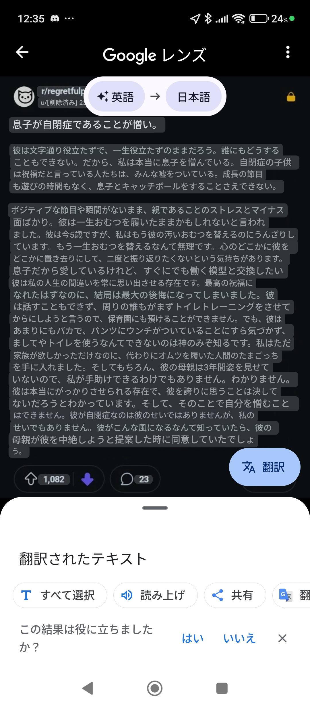 | … | 525/12/24(水)04:32:36No.1385596373そうだねx3出生前診断では自閉症なんてわかりっこない |