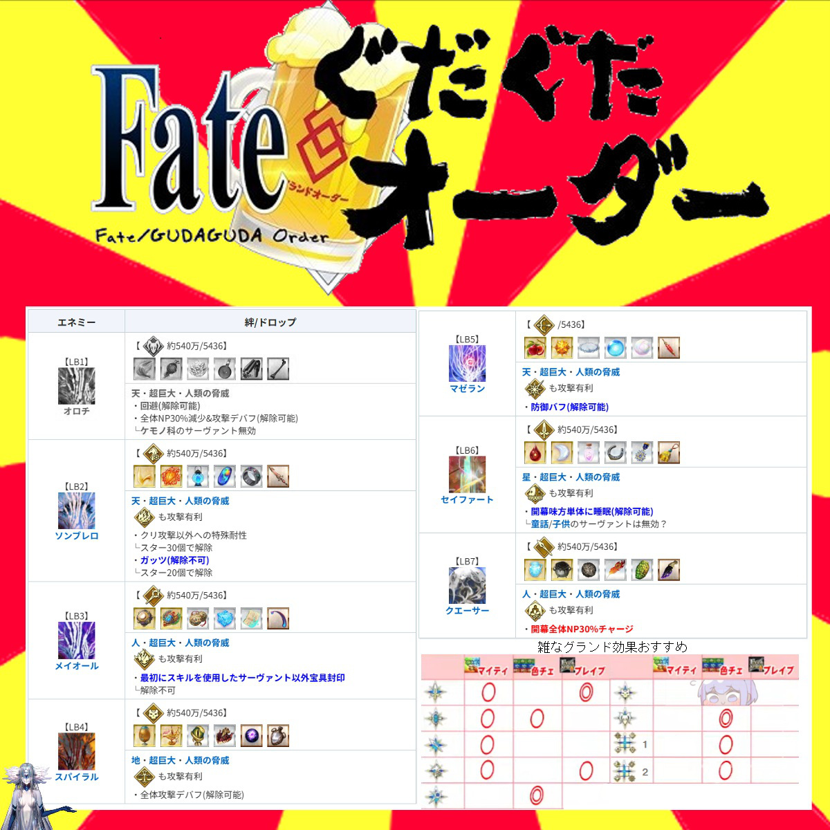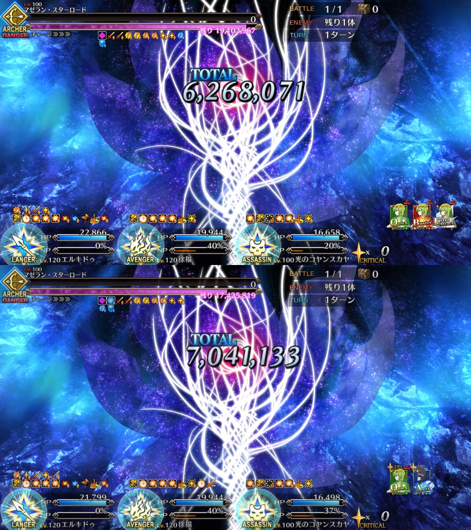 | … | 2725/12/24(水)16:11:39 ID:HC34.cykNo.1385706476+エルキドゥをグランドにしたらオベロンバフだけで1200万くらいダメージでてダメだった |