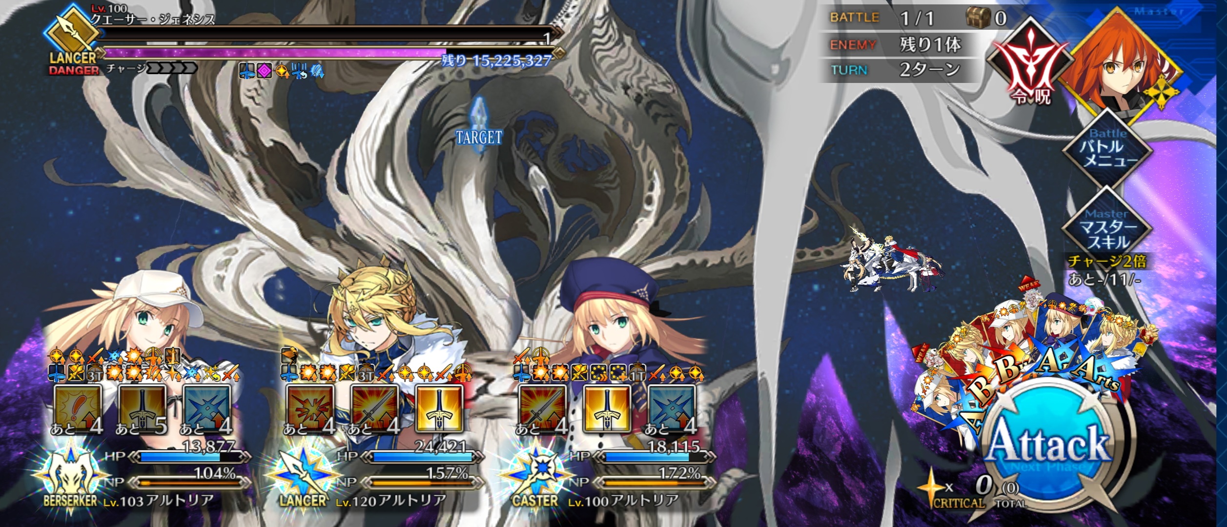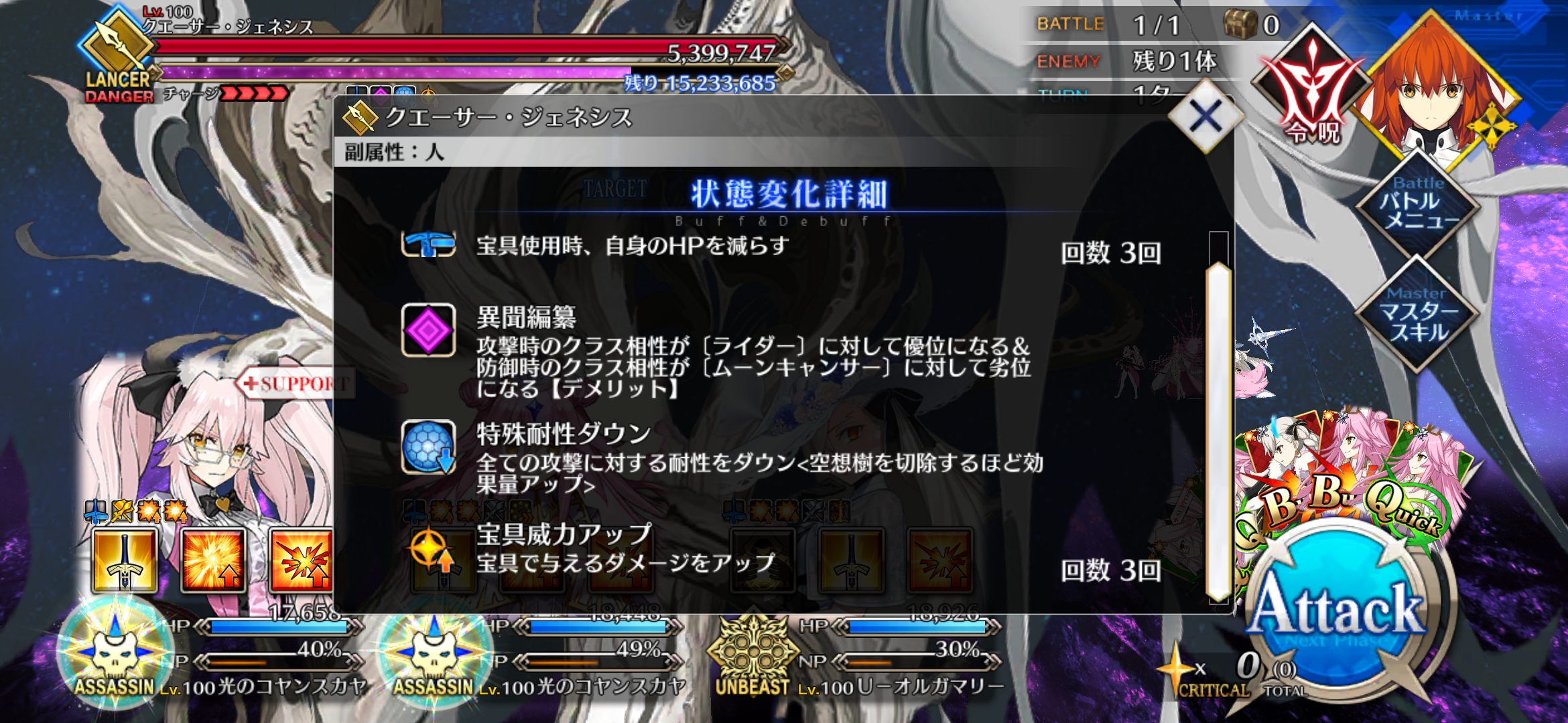 | … | 98025/12/24(水)16:58:50 ID:CiD1tJSANo.1385715841+なるほど後半いけばオダチェン必要なくなって宝具一発とかで終わるようになるのか…いい仕様だな |