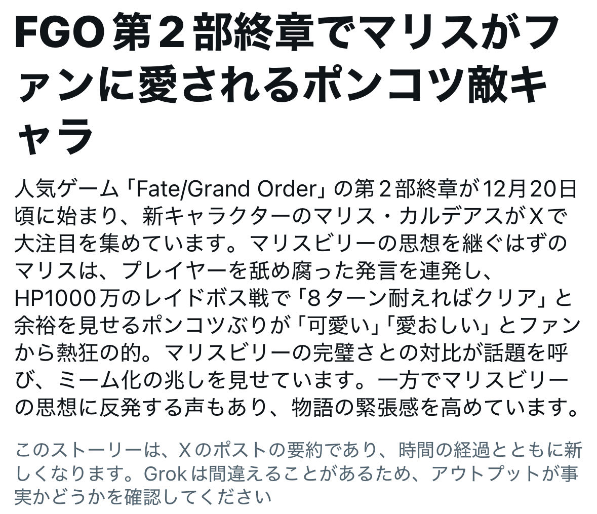 | … | 3425/12/24(水)21:35:16No.1385818529+マリスちゃんが異聞帯をぐだ達に闘わせた理由が思い出せない |