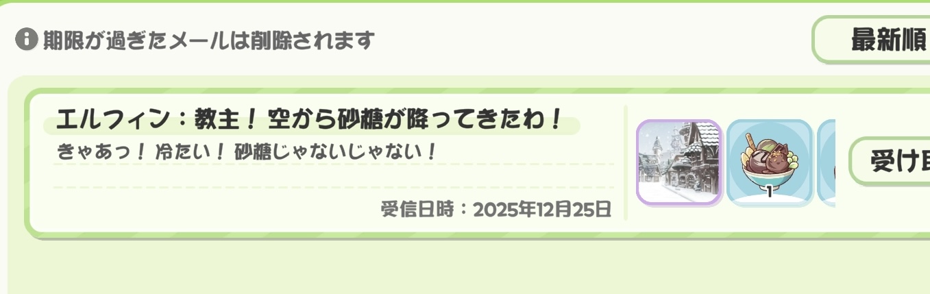 | … | 4525/12/25(木)10:12:27 ID:ipig1ftINo.1385953392+>ブッシュドノエルどこで手に入るんだろうと思ったらルードのパックにくっついてたにゃん >そこ!? 1つは無料で貰えるから推しの使徒と食べるにゃん |