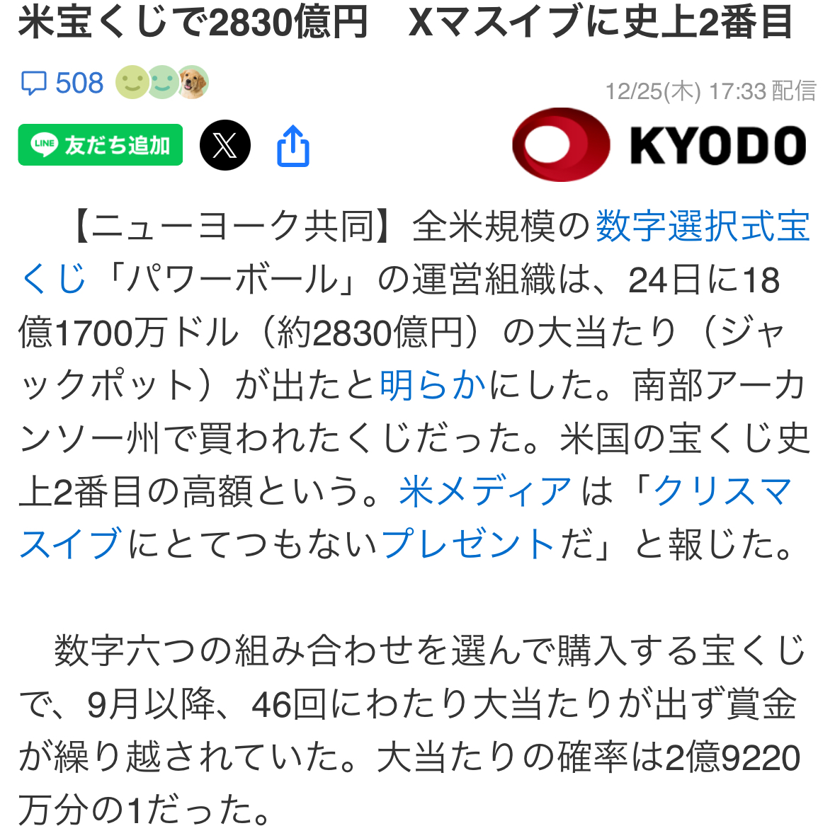 | … | 125/12/26(金)06:37:31No.1386236770そうだねx8アメリカはこの手の高額宝くじ当選でトラブル多発してるから |