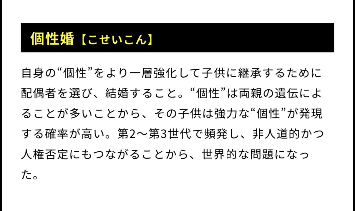 | … | 15525/12/26(金)10:53:42No.1386272083+個性婚は非人道的として社会問題になってたのあたり何があったんだろう個性婚 |