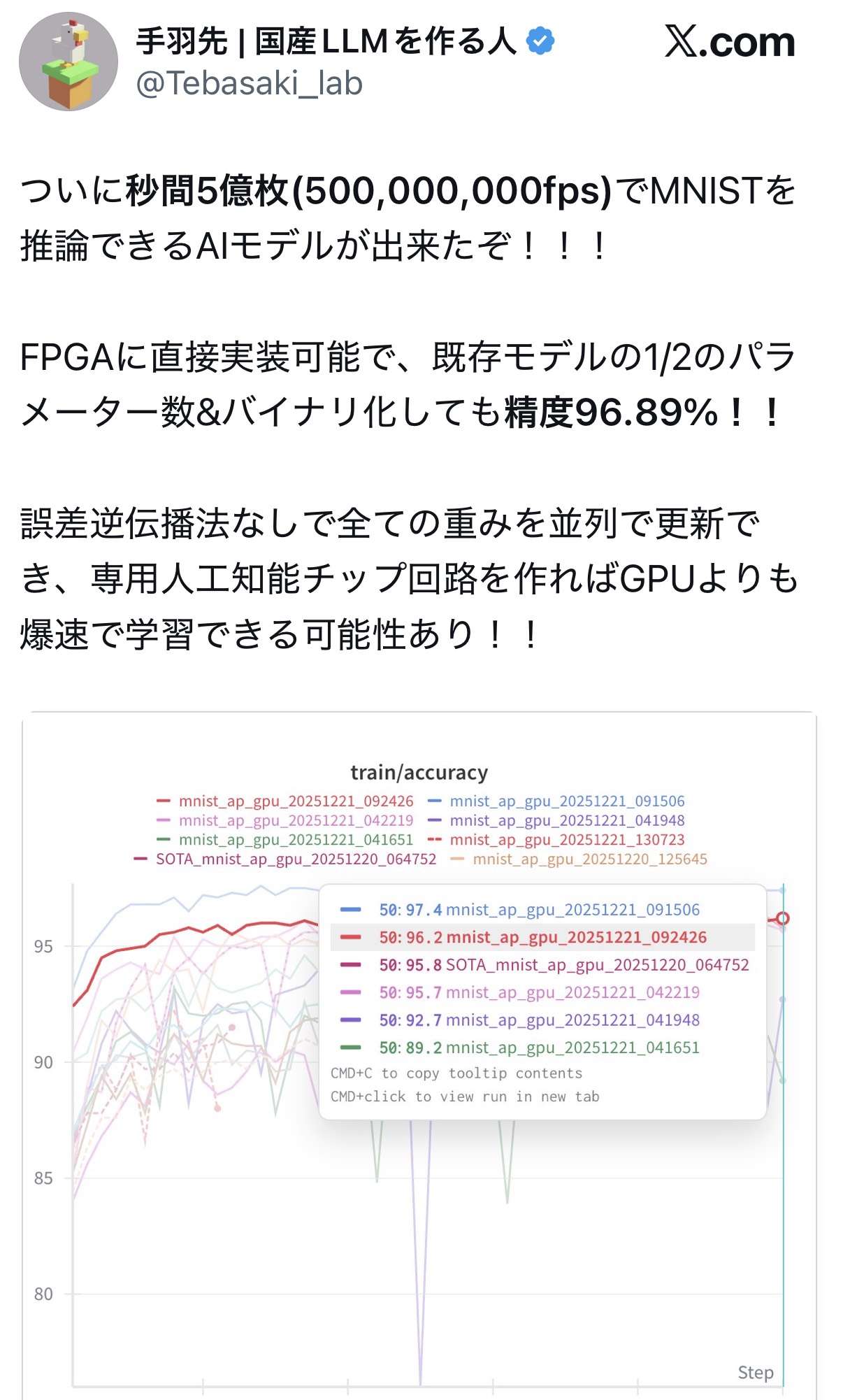 | … | 2425/12/26(金)14:49:38No.1386324716+mnistがなんなのか分からないから凄さが伝わらない… |