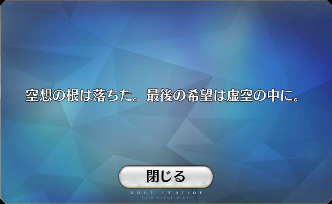 | … | 75025/12/30(火)14:57:55No.1387731582そうだねx1フォーリナー章あってもめておがライターだろうしそもそもオーディールコールだから終章前の話だから終わりだろ |