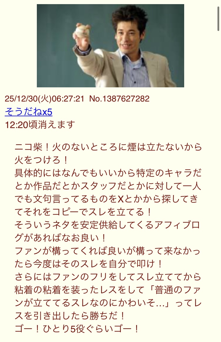 | … | 925/12/30(火)13:01:23No.1387700831+ほんと話し聞かねえカスばかりだな |