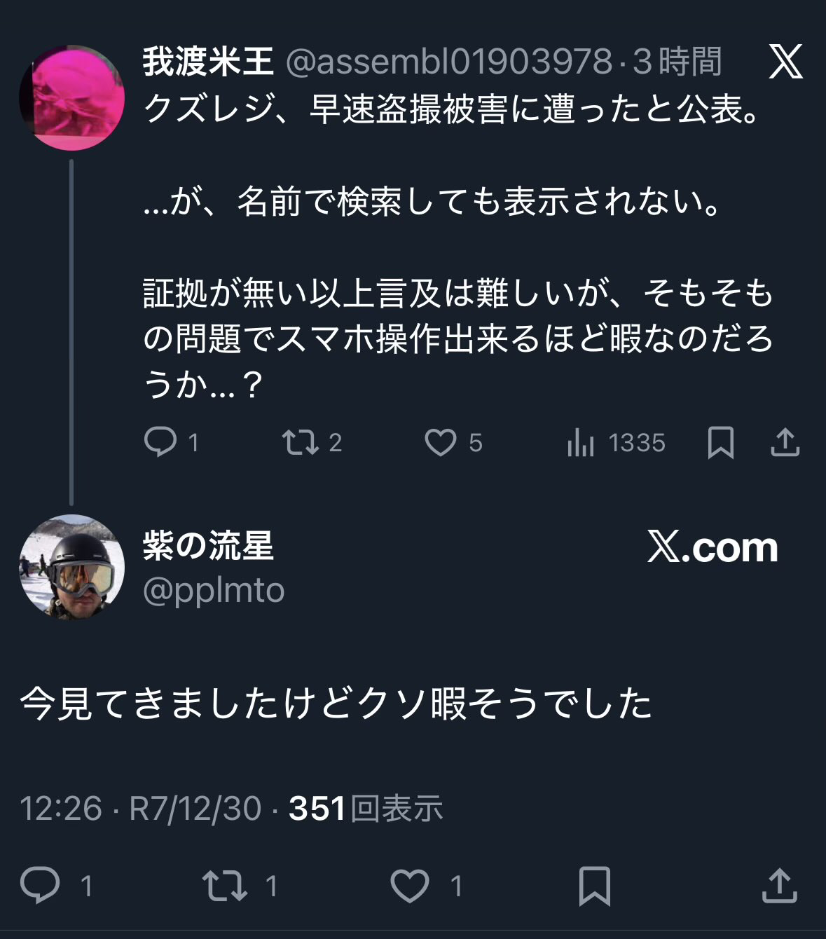 | … | 825/12/30(火)17:13:44No.1387766591そうだねx4同人界隈ちょっとでも追ってたらクズレジの騒動知らんわけねえわな |