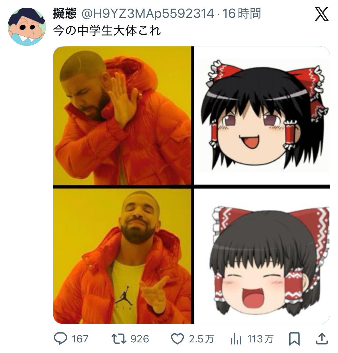 | … | 425/12/30(火)18:21:11No.1387787109そうだねx4まあ中学生に限らず馴染みがあるのは下 |