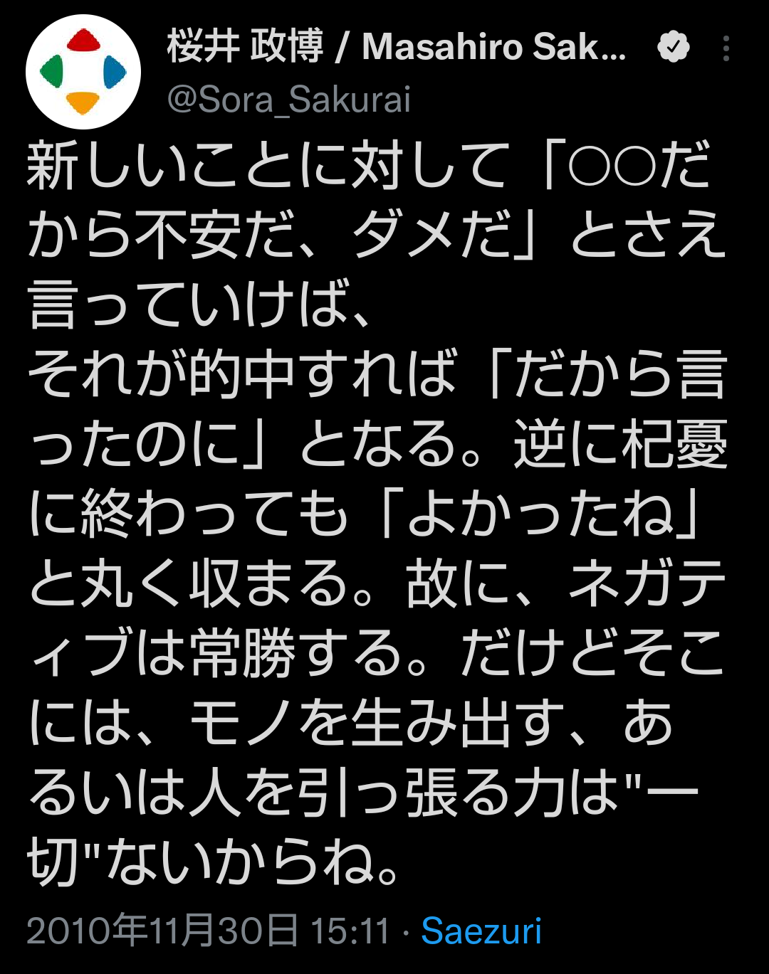 | … | 5325/12/31(水)08:22:29No.1387968548+何かを生み出す仕事だからずっとこれ言われ続けてたんだろうな |