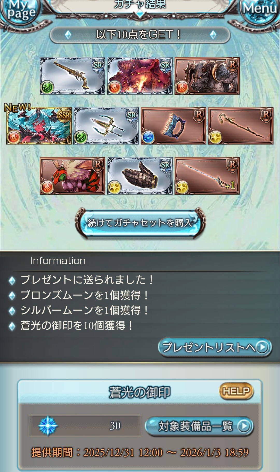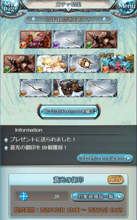 | … | 89925/12/31(水)12:19:04No.1388021909+とりあえず120連引いてサンチラひいたんだよ 後は明日以降の引きで決めるんだよ |