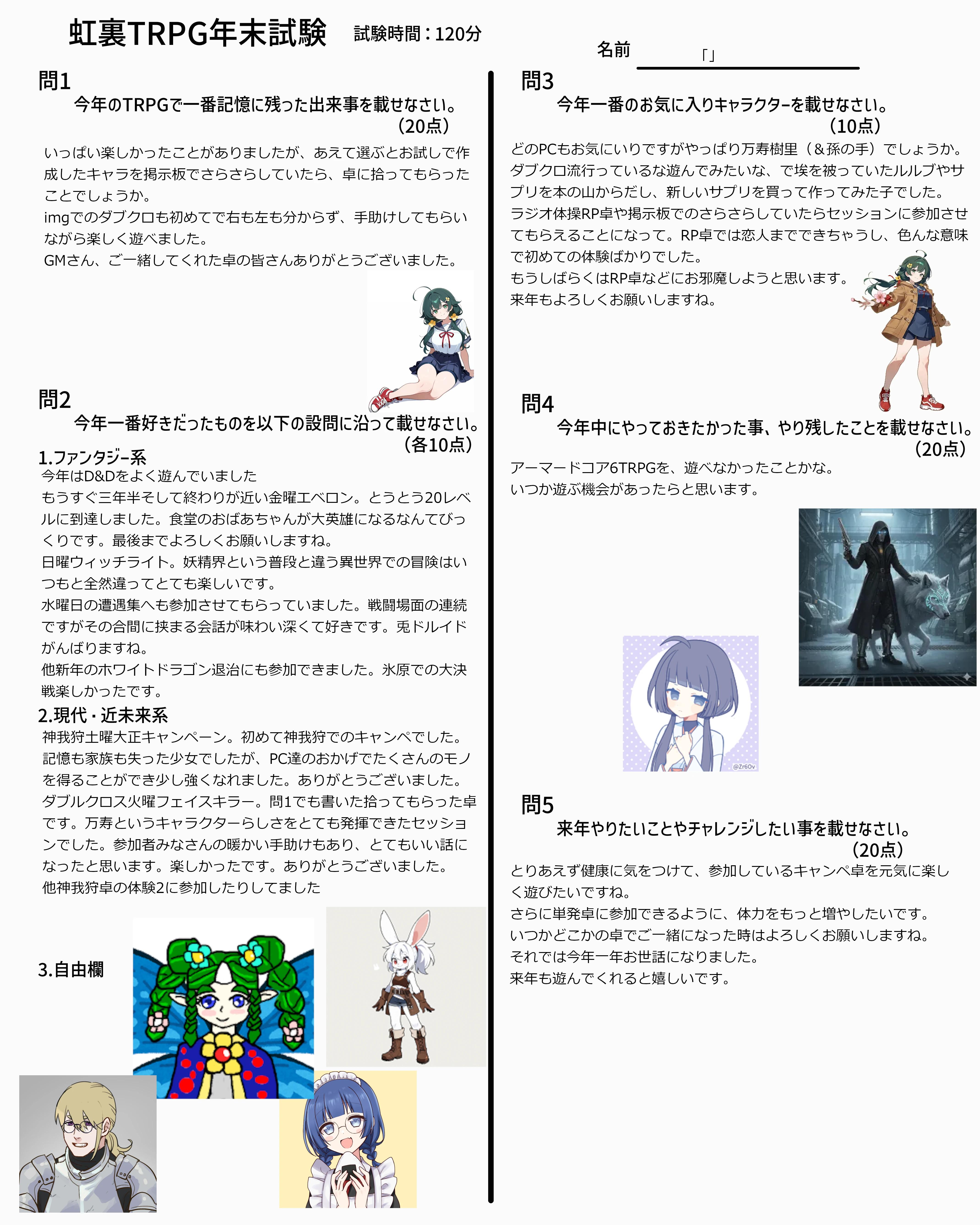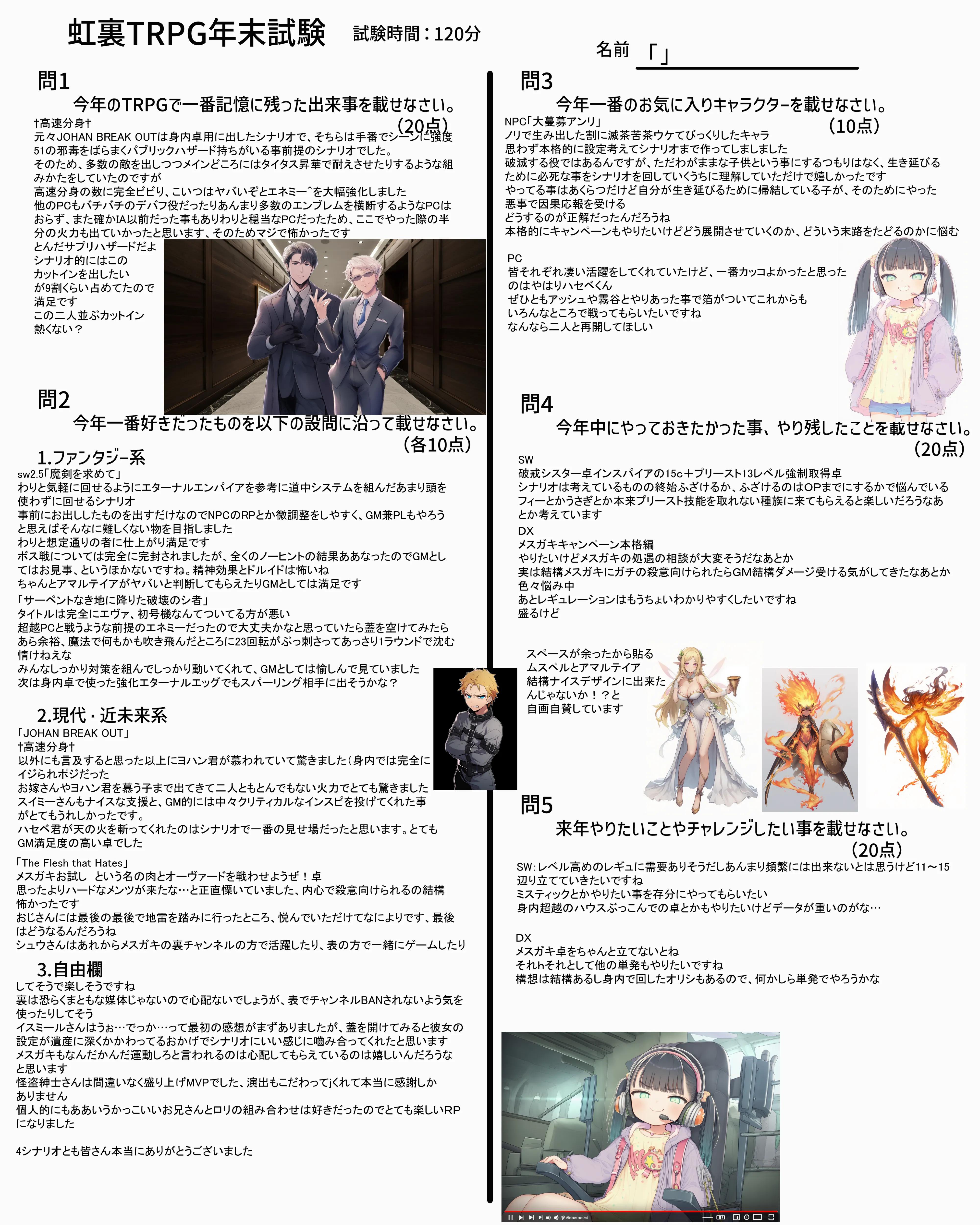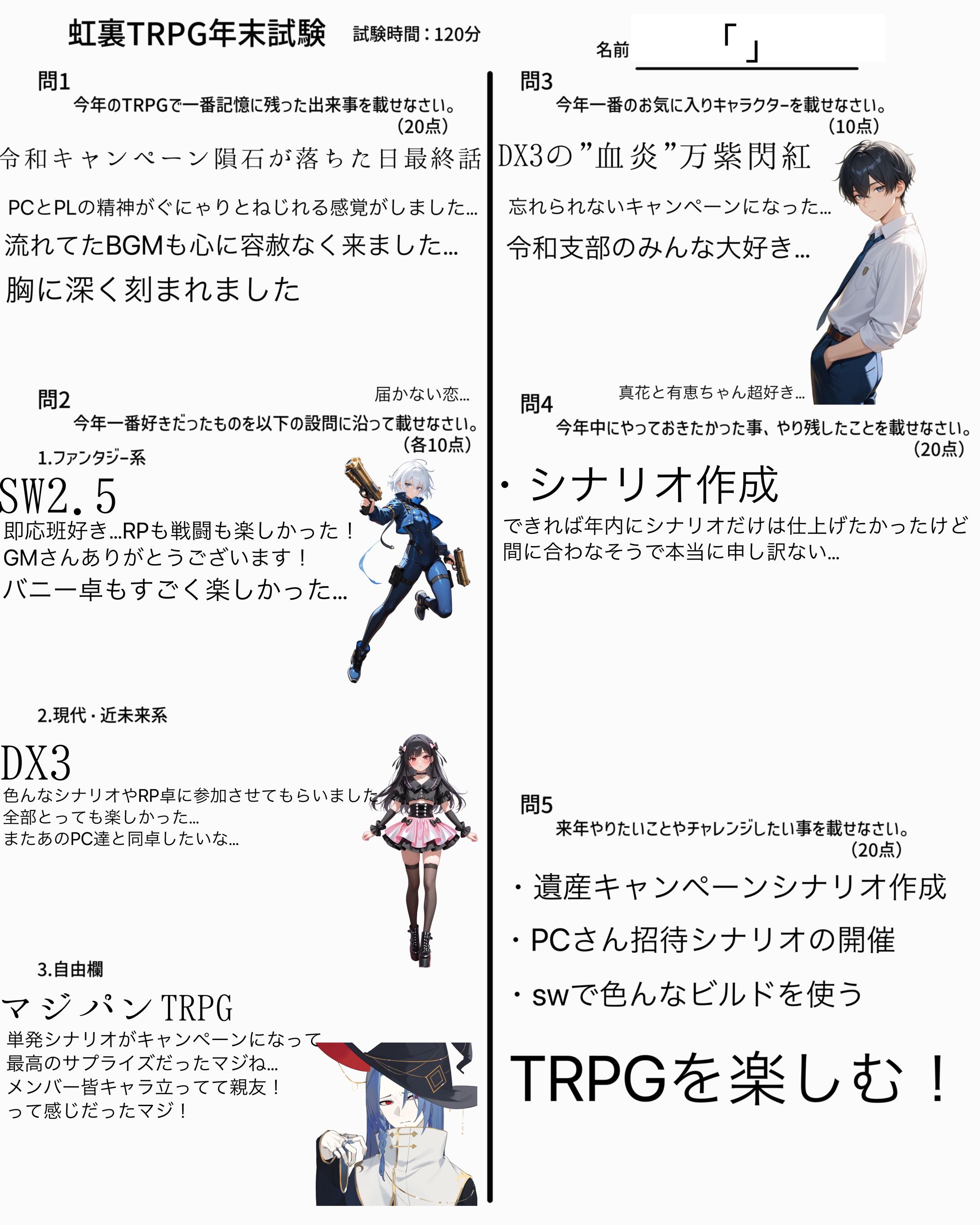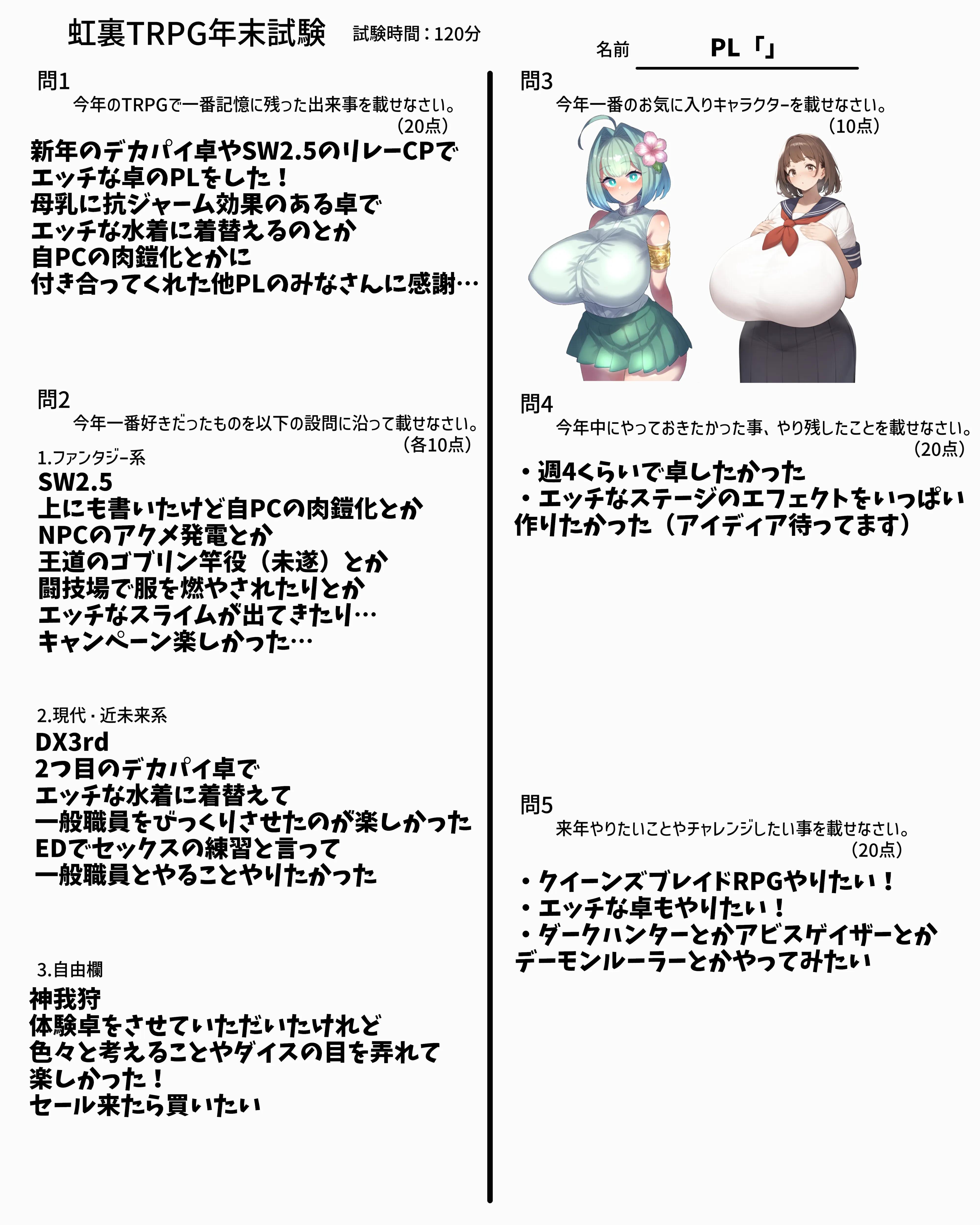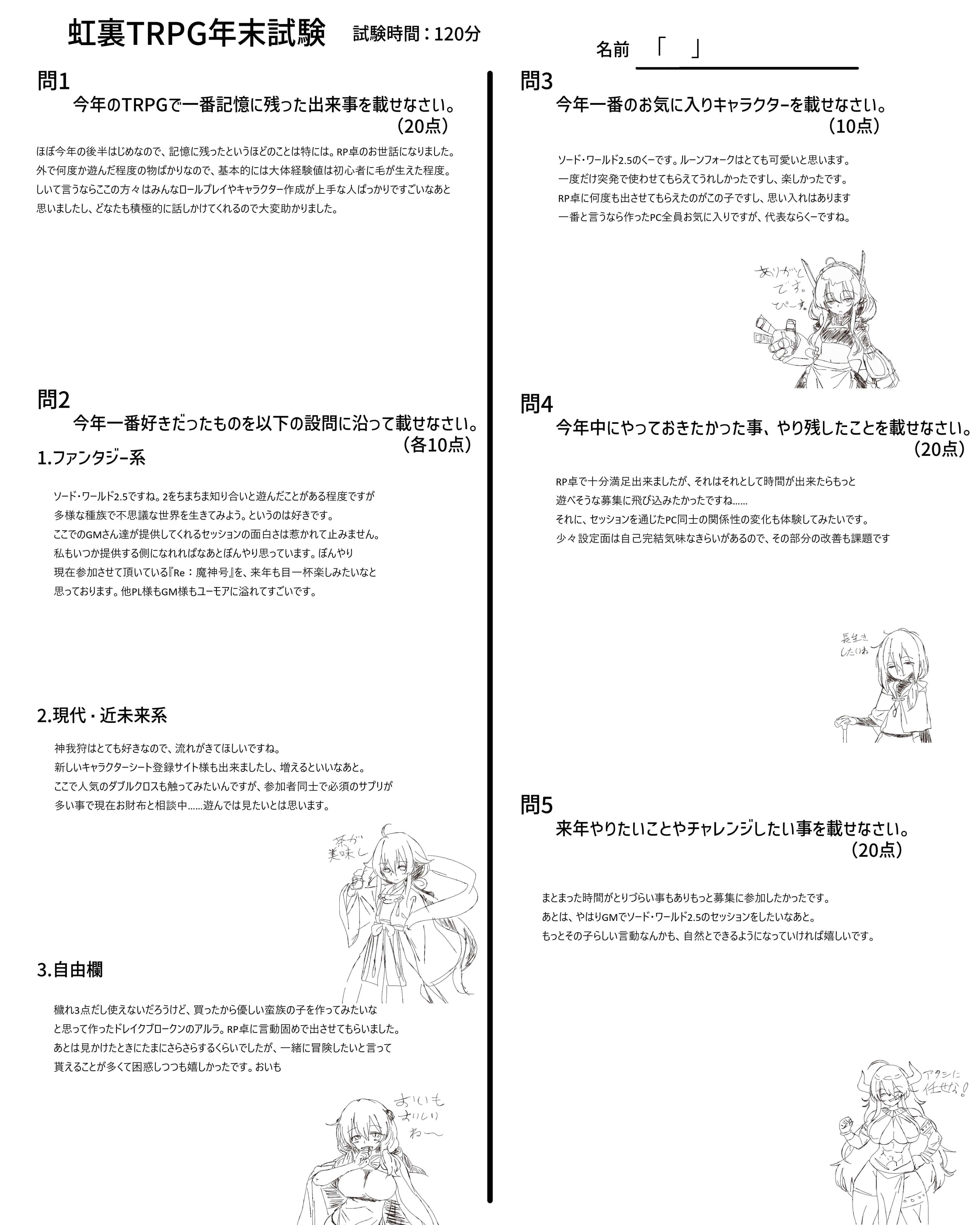 | … | 7725/12/31(水)18:55:55No.1388133350そうだねx6なんか家に帰れたので回答用紙とおえかきまとめ再掲します |