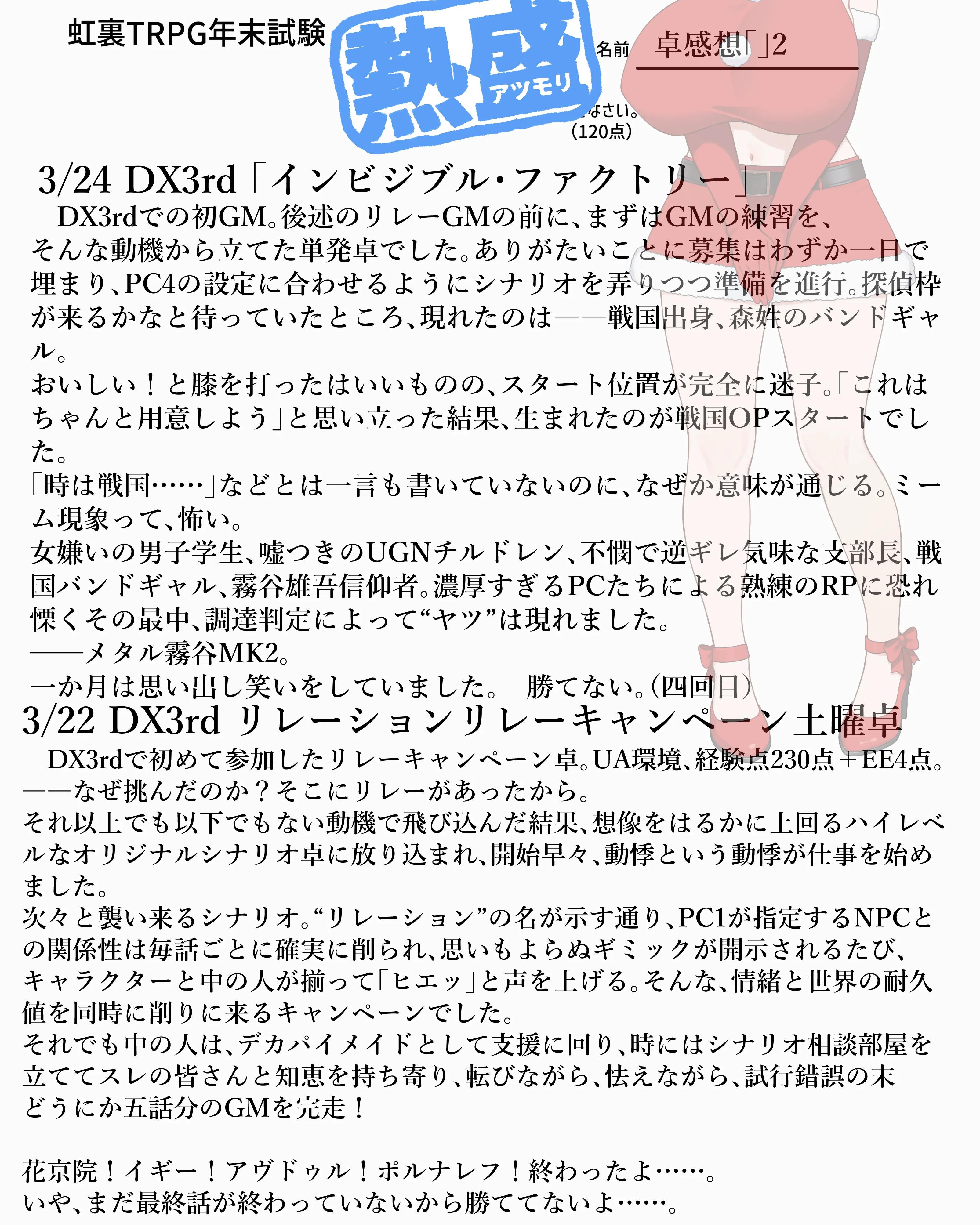 | … | 325/12/31(水)18:14:51No.1388120862そうだねx4>答案用紙はありませんがさらさらさせていただきます |