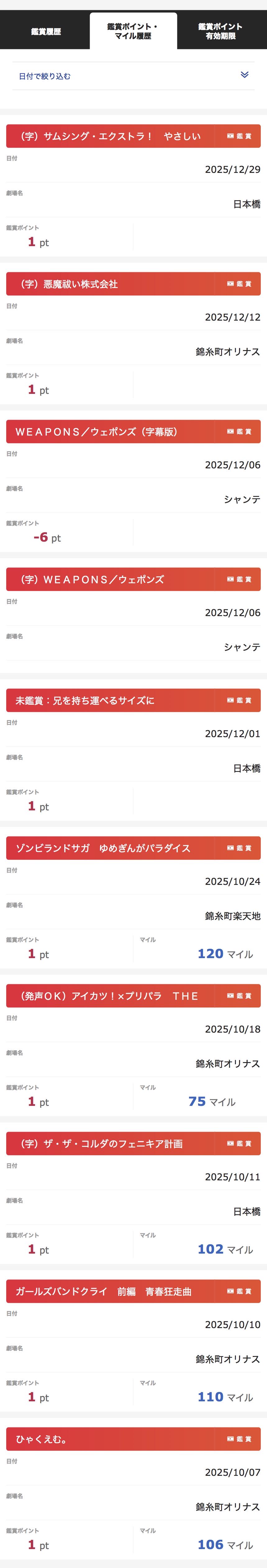| … | 27025/12/31(水)19:40:31No.1388149176+一般的には映画館で映画見るのは年一本くらいらしいけど今年は結構映画館行く人多かったんじゃないだろうか |