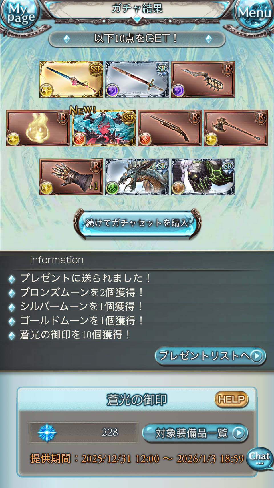 | … | 6126/01/02(金)05:15:56No.1388672168+30連白騎士 昨日天井でサンチラ取ってたから本当にありがたい… |