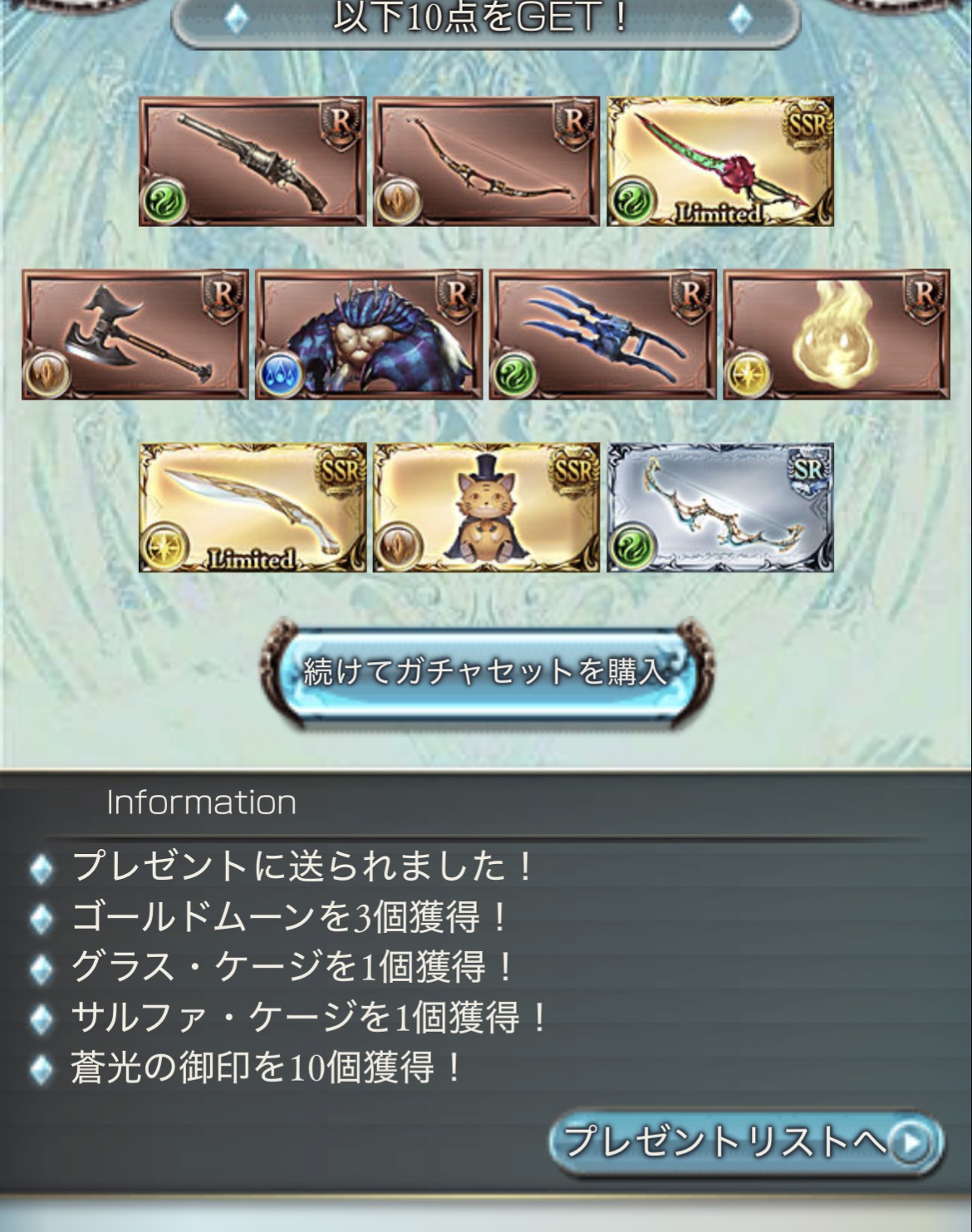 | … | 3526/01/02(金)05:12:08No.1388672044+ブレキでハウヘトと白騎士きたからセーフ 後は明日天井でサンチラ手に入れるのみ |