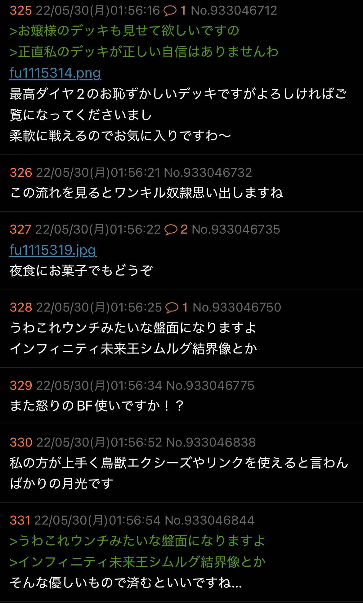 | … | 6326/01/02(金)20:08:26No.1388857033+重ねられたらディンギルスからアーゼウスして盤面どかしてから展開できたんですよね |