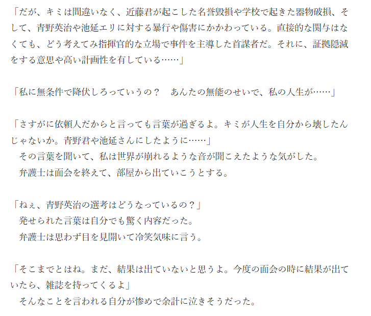 | … | 2126/01/02(金)21:24:00No.1388886377+全ては文芸部の部長が描いていた小説の内容だったんだ |