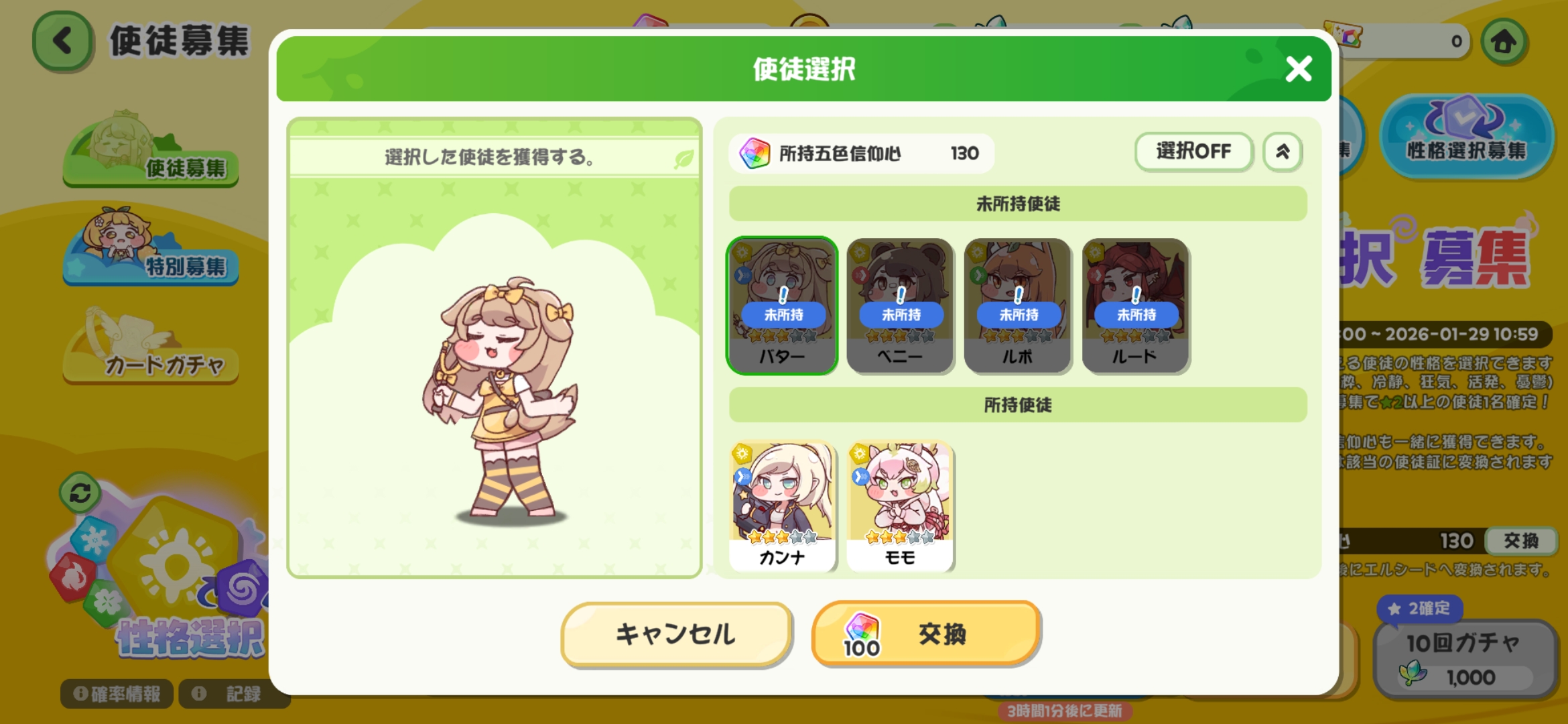 | … | 33026/01/03(土)01:03:44 ID:bYuhf.6wNo.1388967546そうだねx2ぶっちゃけ100連天井やってるんだから今のうちに欲しいキャラ引き換えても何も損しないにゃん |