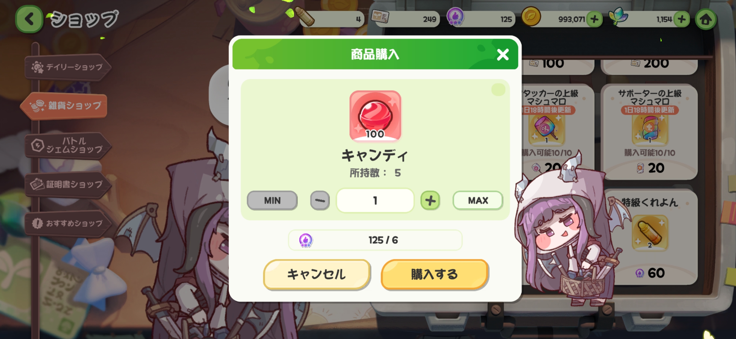 | … | 58226/01/03(土)11:08:27 ID:qKyCrtYYNo.1389037708+中級マシュマロが下級より多かったら売っちゃっていいにゃん |