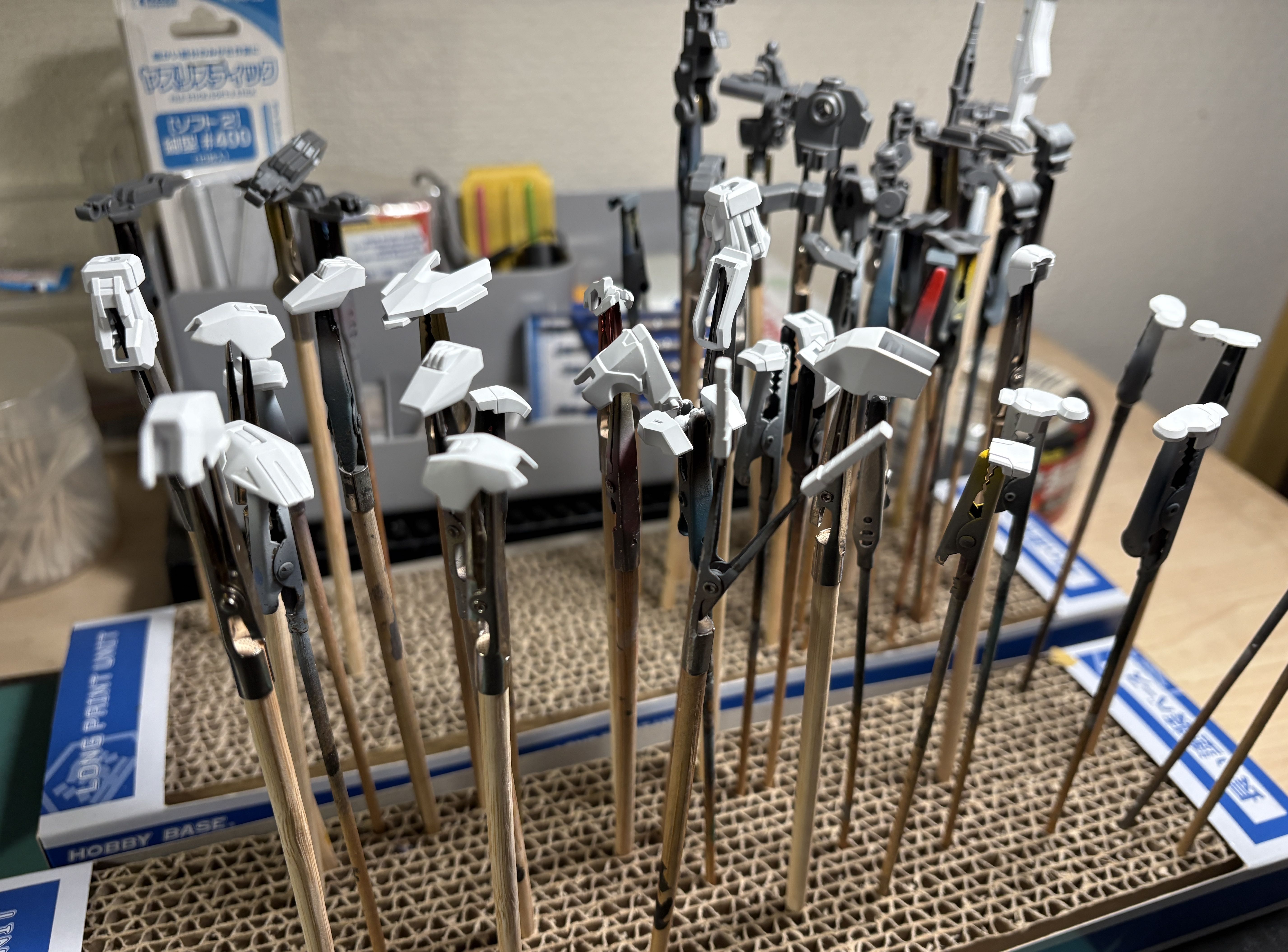 細かいパーツとか持ち手以外になんかまとめて付けれてそのまま塗装出来る方法ないの?