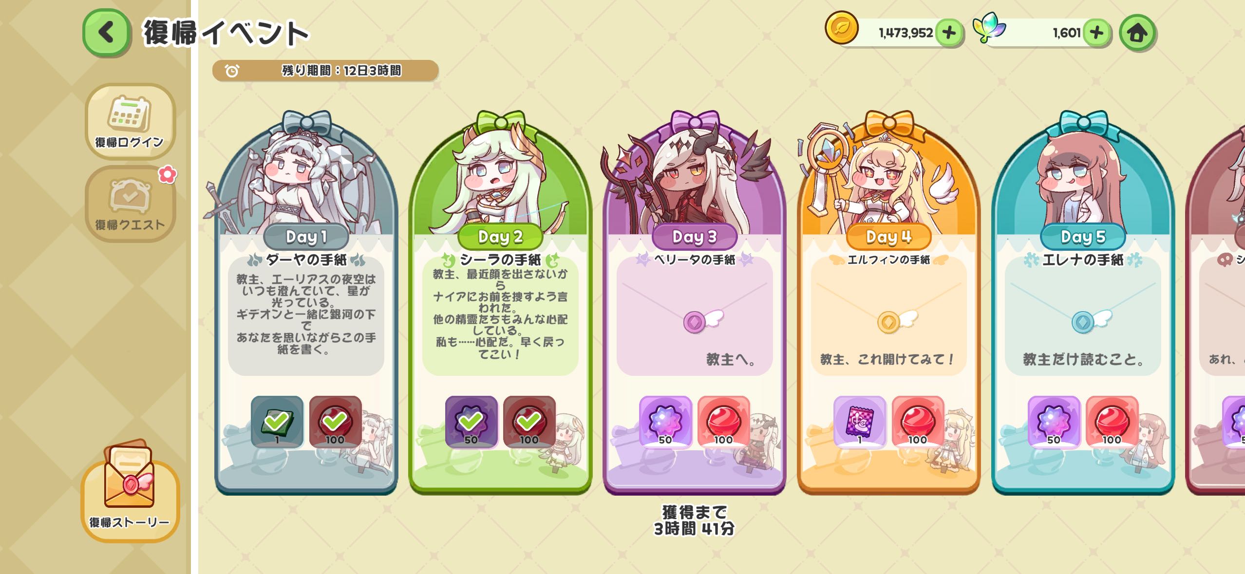 | … | 4026/01/04(日)00:35:29 ID:bBQuN3IQNo.1389285249+100日イベントでもそうだけどまだ特に面識無かったのに突然おてがみ来るのちょっと面白いにゃん |