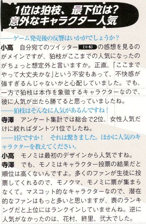 | … | 6826/01/04(日)17:45:01No.1389461813そうだねx1久しぶりに2やるとマジで七海と狛枝以外ガヤだな…ってなる |