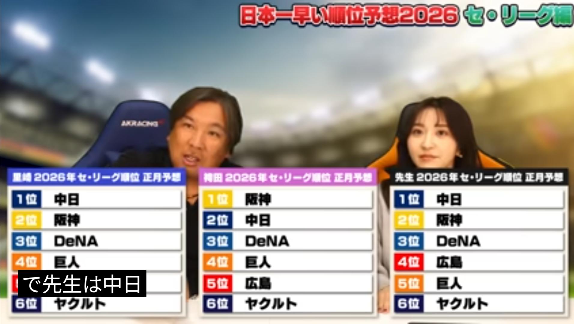 【セ・リーグ】2026シーズン順位予想 阪神が圧倒的優位か 2位以下は大混戦の可能性がこのスレは古いので、もうすぐ消えます。