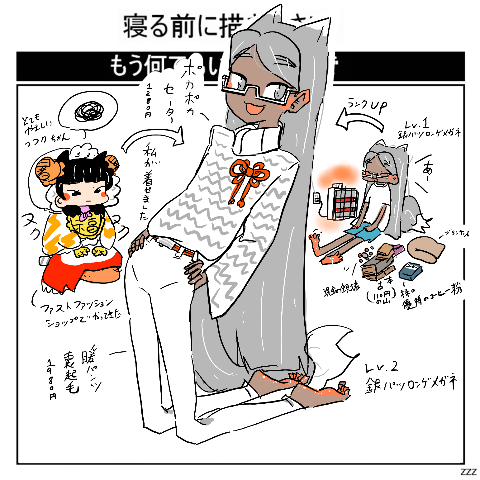| … | 2826/01/06(火)23:23:20No.1390145474+フフクちゃんが無理にでも着せないと銀髪ロン毛メガネちゃんは半袖で外出するんだ鼻水を垂らしながら |