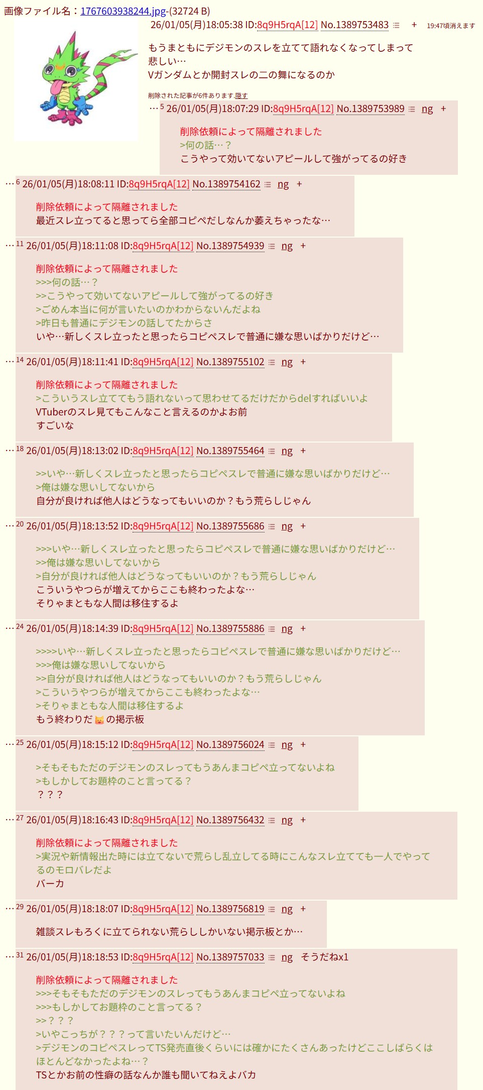 | … | 626/01/07(水)18:55:39 ID:rbFLKQisNo.1390326714+削除依頼によって隔離されました |