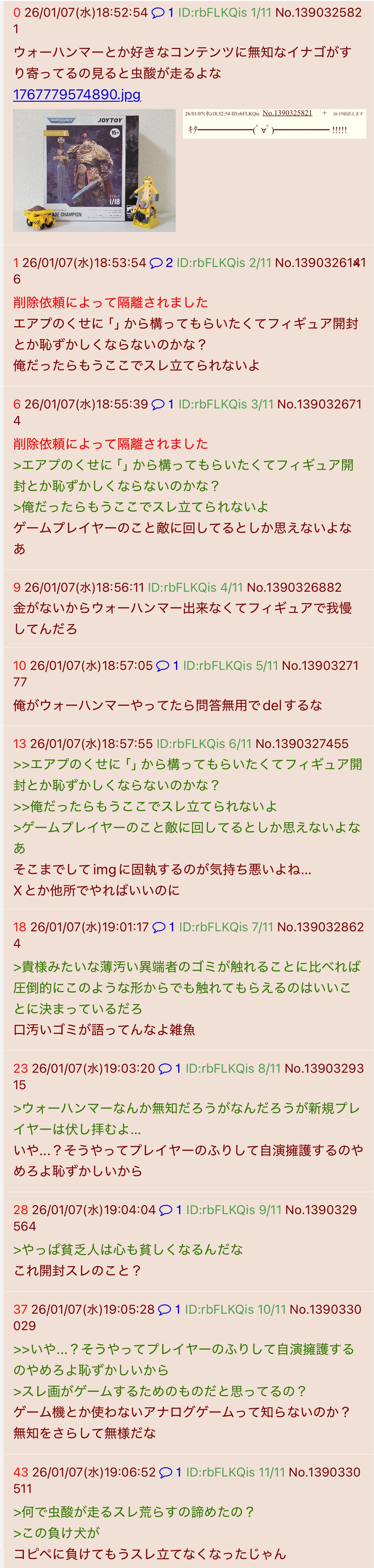 | … | 926/01/07(水)18:56:11 ID:rbFLKQisNo.1390326882+金がないからウォーハンマー出来なくてフィギュアで我慢してんだろ |