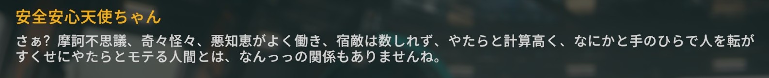 | … | 33226/01/08(木)14:59:57No.1390558179+>児童集会機能が確か女将パエトゥーサ辺りで追加された機能だから一緒にその辺のデータもたぶんぶちこんでる |