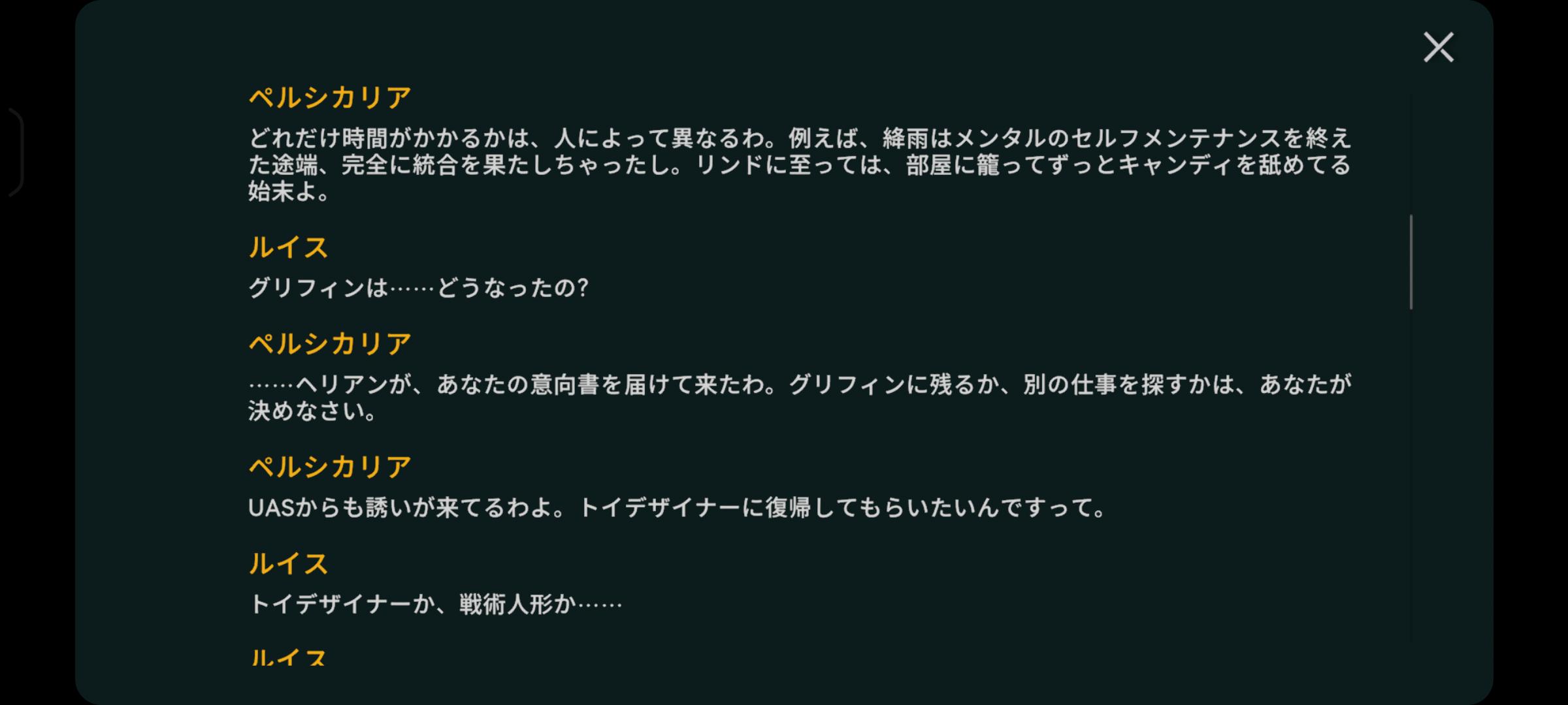 | … | 4526/01/08(木)13:23:46No.1390537752+指揮官最終的にメンタルデータの40%ちょい欠損してるからな |