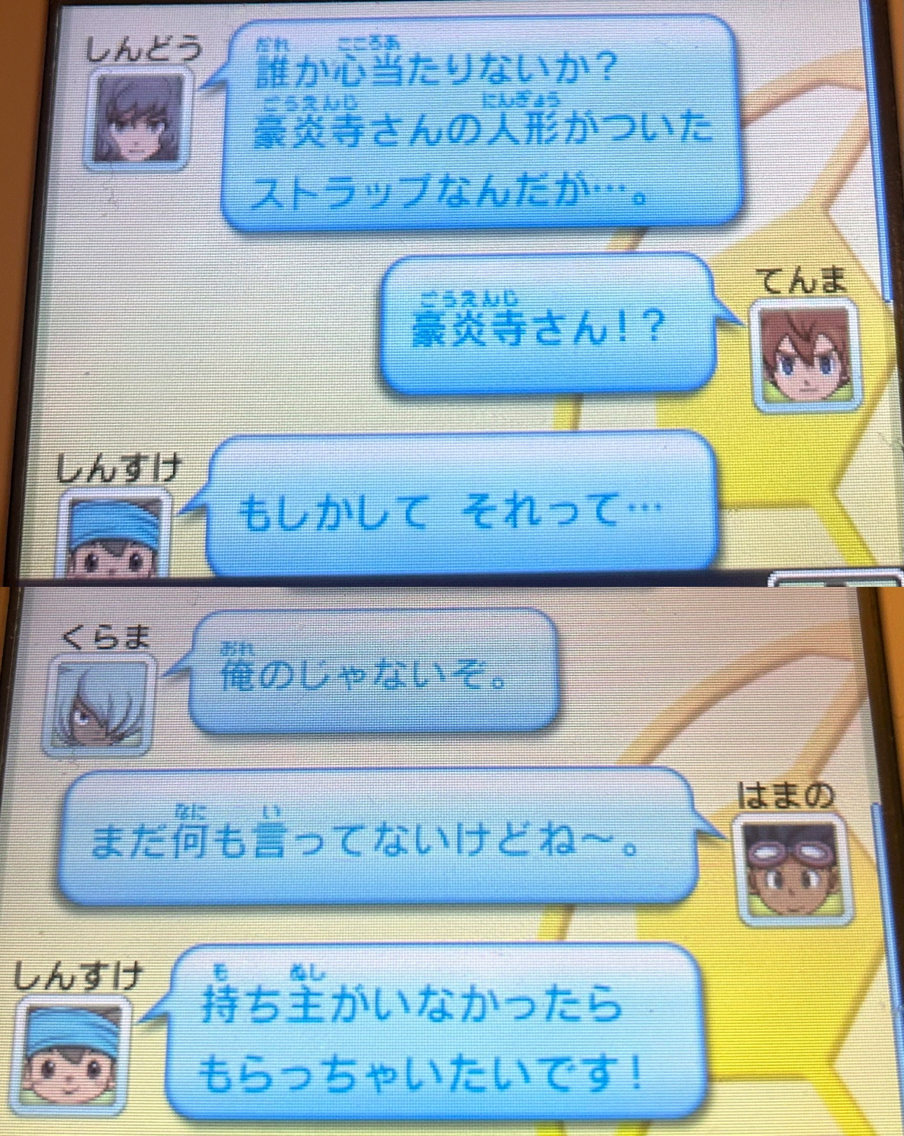 | … | 4726/01/08(木)19:19:52No.1390624687そうだねx1豪炎寺さんのストラップ欲しがる信助可愛いやんす |