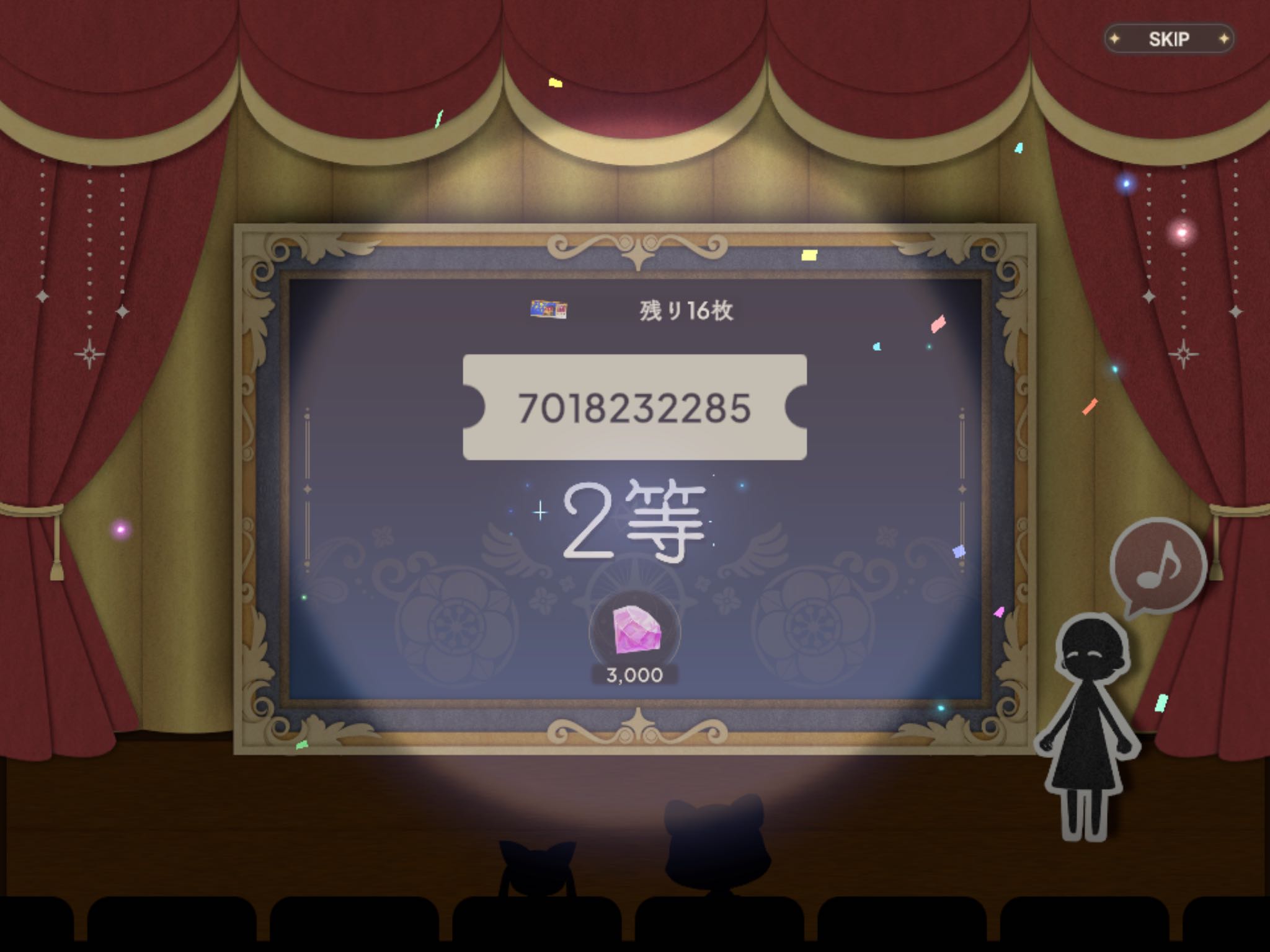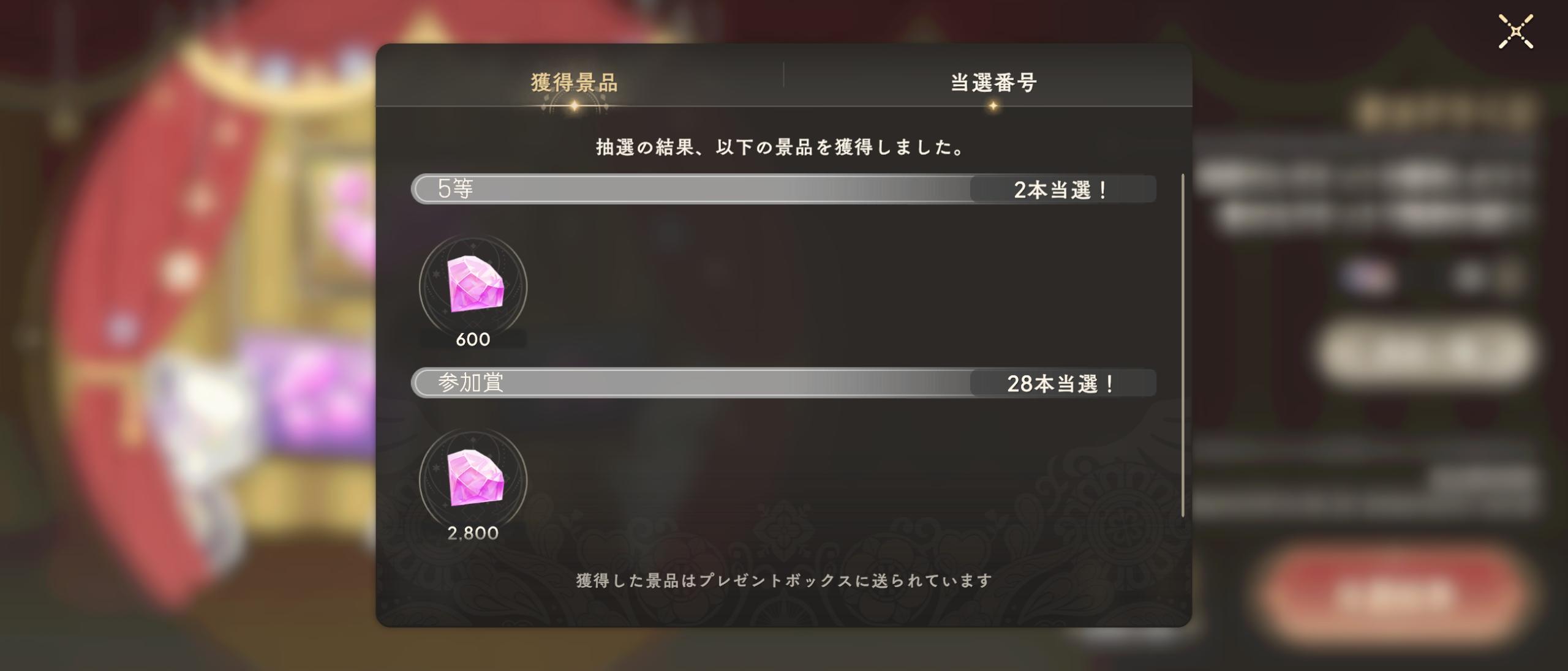 | … | 8526/01/09(金)15:32:45No.1390846842+>>27枚で4等4枚5等5枚だったの! >>これ勝ちですかなの!! >3枚はどうしたの? もらいわすれてたっぽいの… |