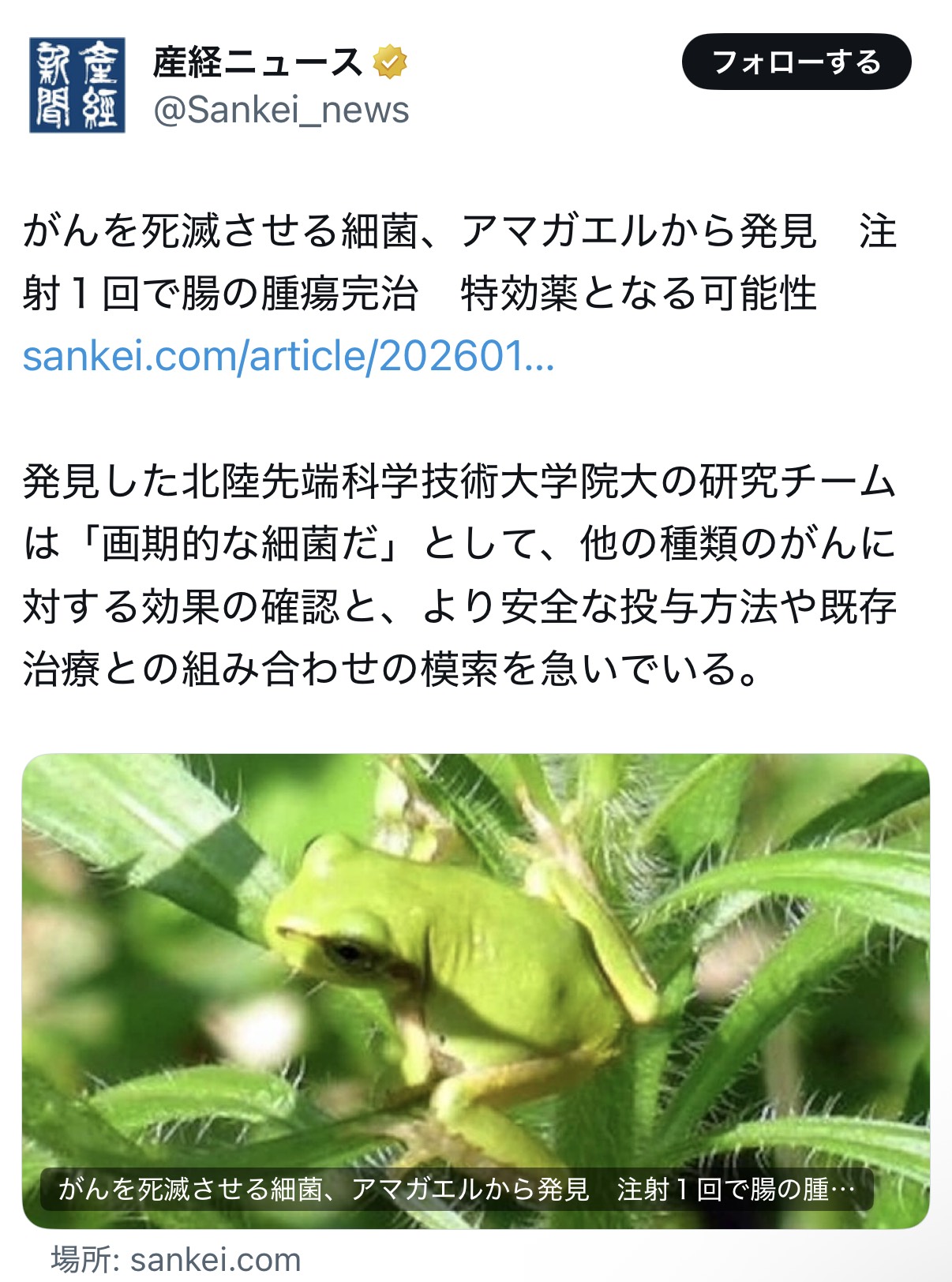 | … | 4026/01/10(土)18:11:29No.1391196676そうだねx1四年くらい前にも似たようなニュースがあったり定期的にガンを殺す細菌とかウイルスとか出て来るな |