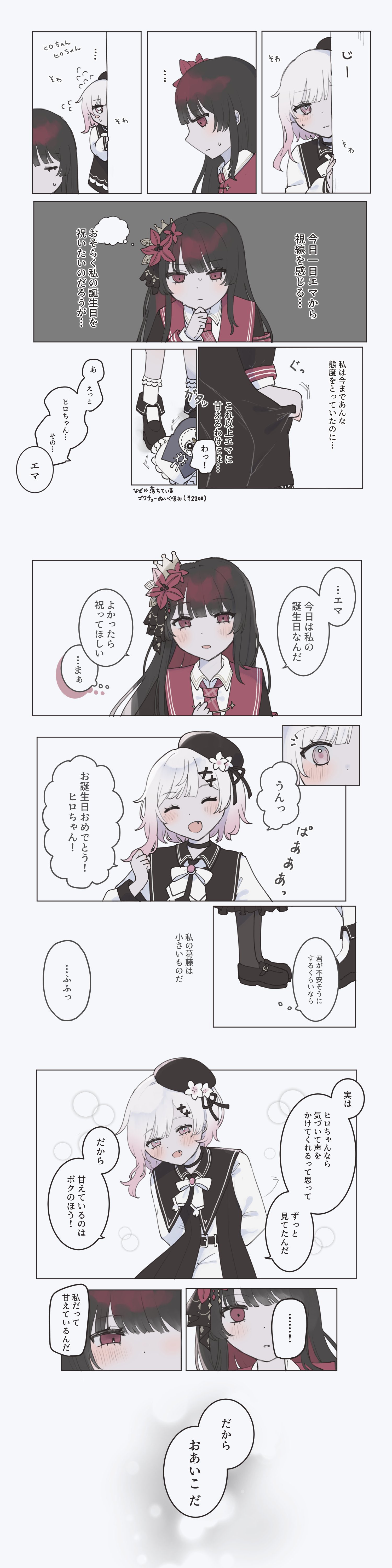| … | 6526/01/10(土)23:09:20No.1391303537+(二階堂家は女の子を誕生日に送ってもらう風習があるそうよ…) |