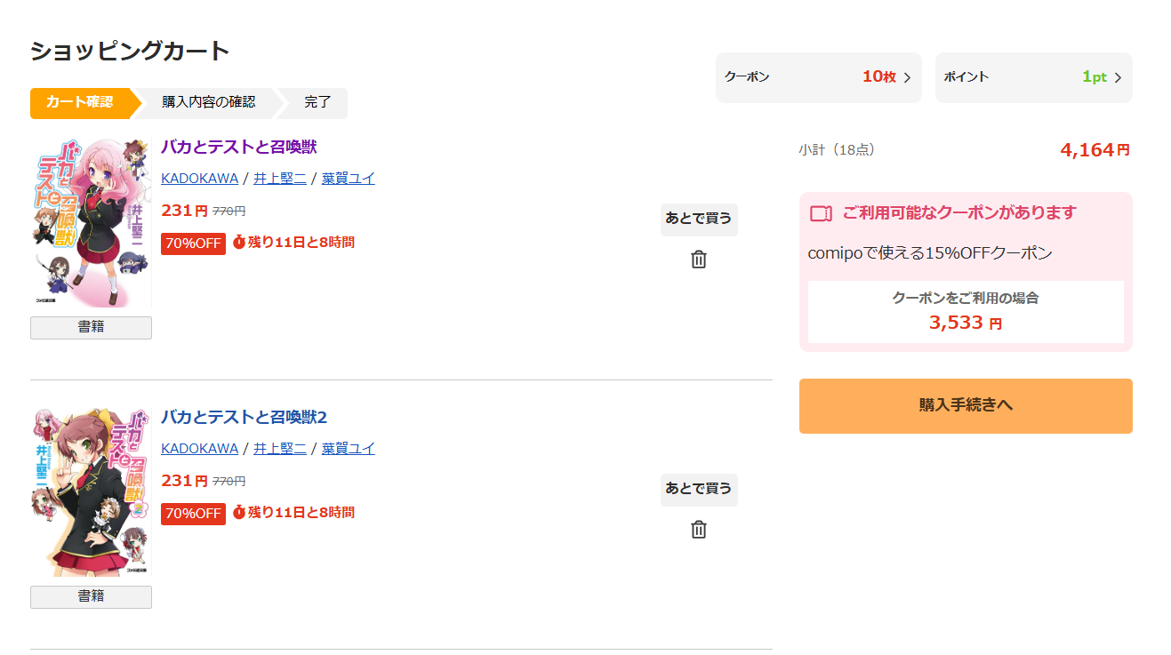 | … | 226/01/11(日)15:11:29No.1391489612+さらに15%オフクーポンも合わせて全18巻購入で3,533円だ |