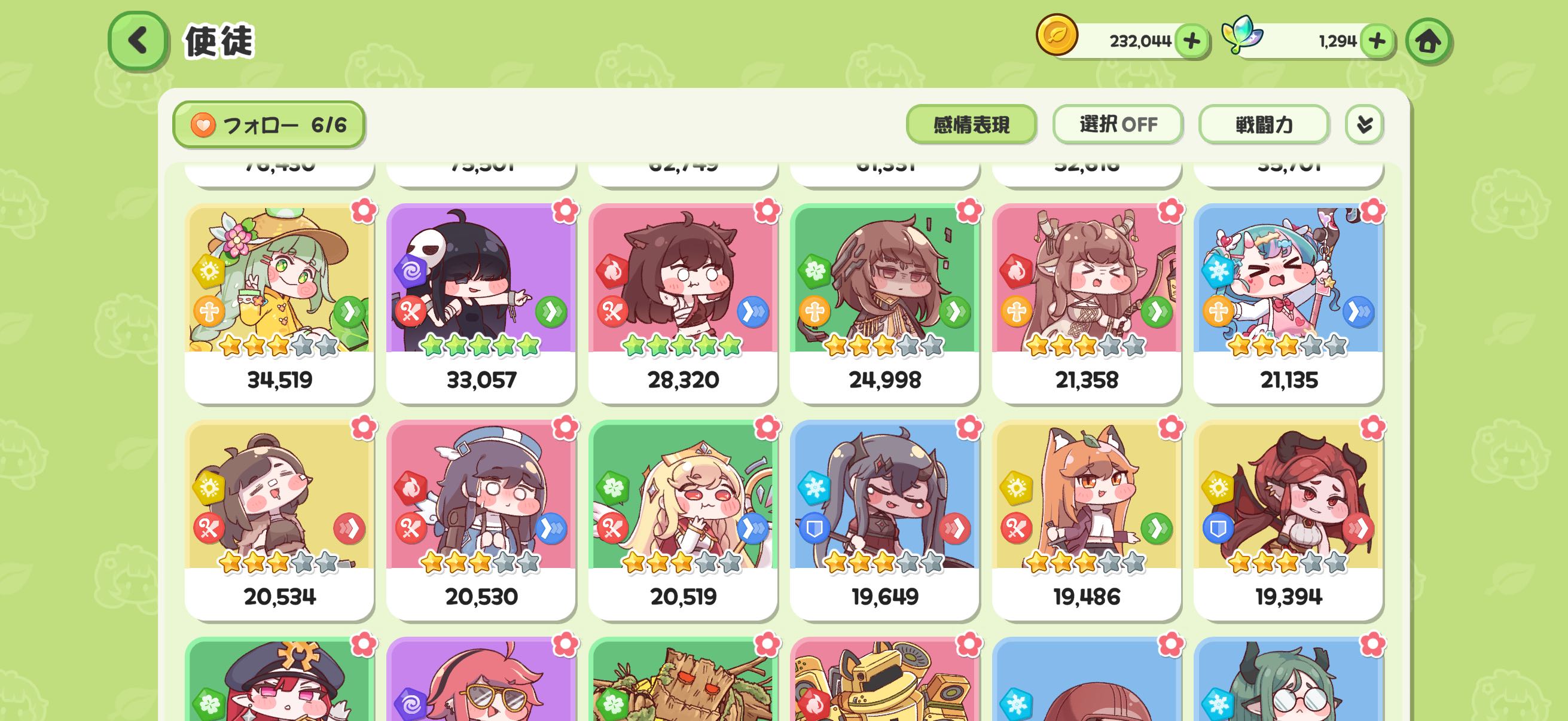 | … | 43526/01/11(日)20:31:02 ID:/qcPu61sNo.1391595214+序盤なんて前衛とヒーラーが1人以上いれば6属性1人ずつでも低レアでもどうにでもなるにゃん |