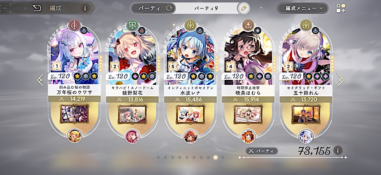 | … | 8526/01/12(月)00:29:29No.1391683980+>星5だいたい晶花コンプしたから星4の残りやってるけど |