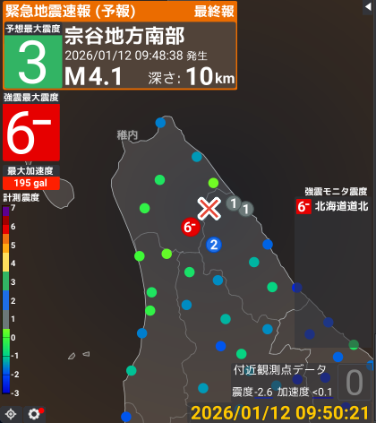 | … | 826/01/12(月)09:54:11No.1391740036+宗谷北部?!そんなとこ揺れんのか? |