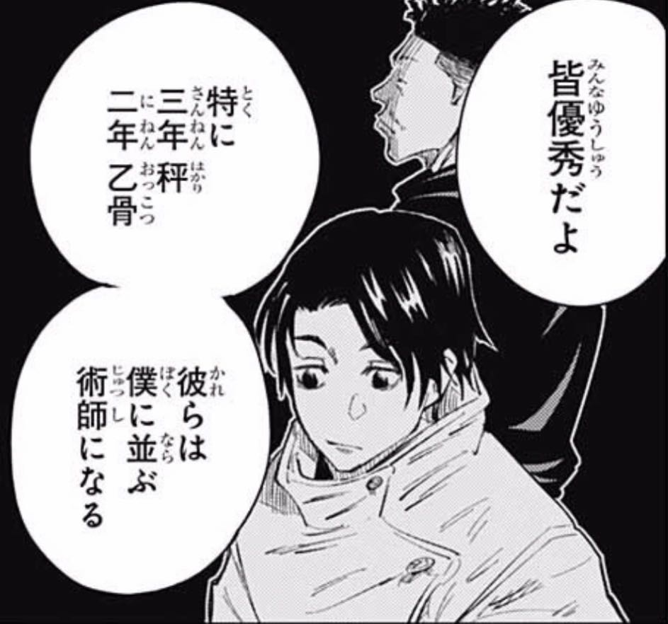 | … | 726/01/12(月)21:57:23No.1391946092+改めて見るとこのときの言い方だと虎杖って自分に並ぶ判定とは別枠だったんだな |