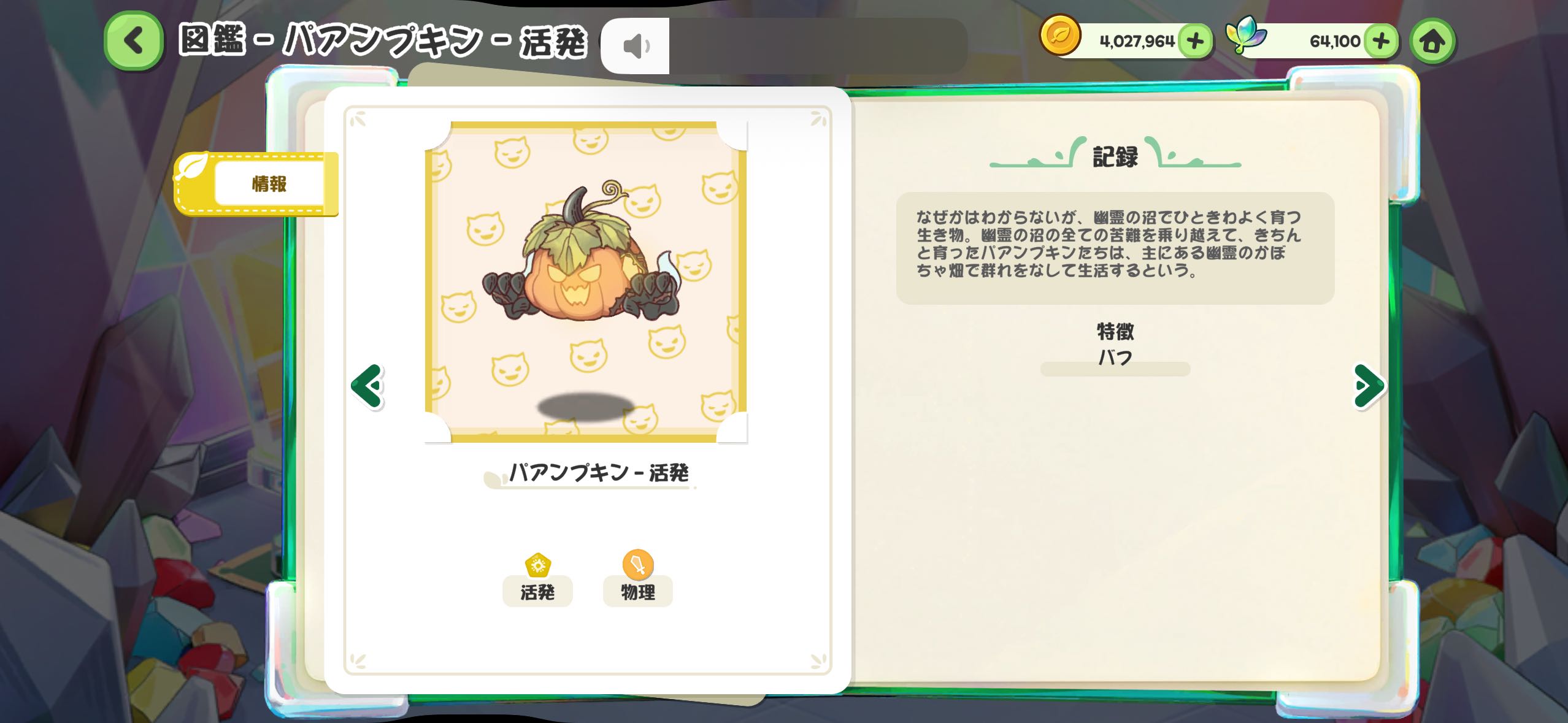 | … | 79526/01/13(火)11:36:24 ID:IFCZYa8YNo.1392067902+>パンプキンじゃなくてパアンプキンなんだ… そういうエネミーだからね 最早通常のかぼちゃも当然あるしスピッキーは話しかけまくってる |