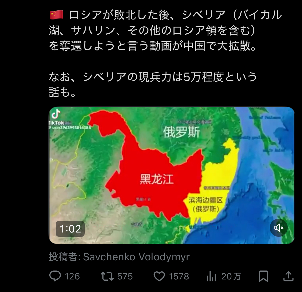 | … | 926/01/13(火)21:26:48No.1392222377そうだねx7国家的目標を清朝以来の悲願沿海州奪還に切り替えて |