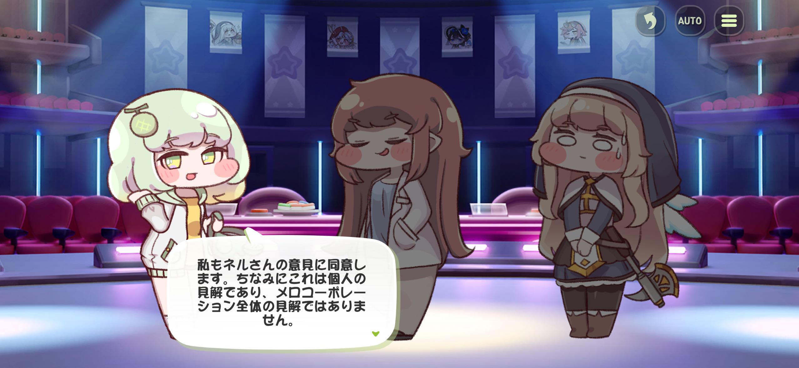 | … | 1726/01/17(土)20:35:34 ID:8SmmSz5ENo.1393394889+他人のスクショ見て思ったけどスキン反映ONにしてアイドルメロナに審査員やらせるのも乙なものにゃんね |